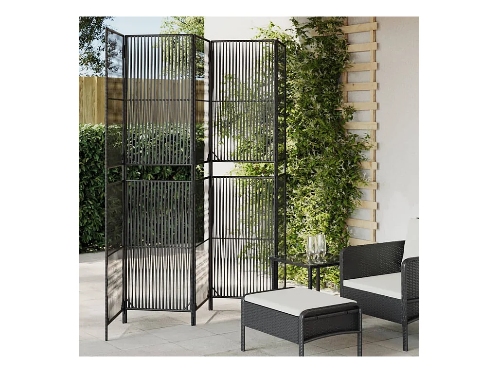Paravent 4 panneaux noir résine tressée WVGQ5796