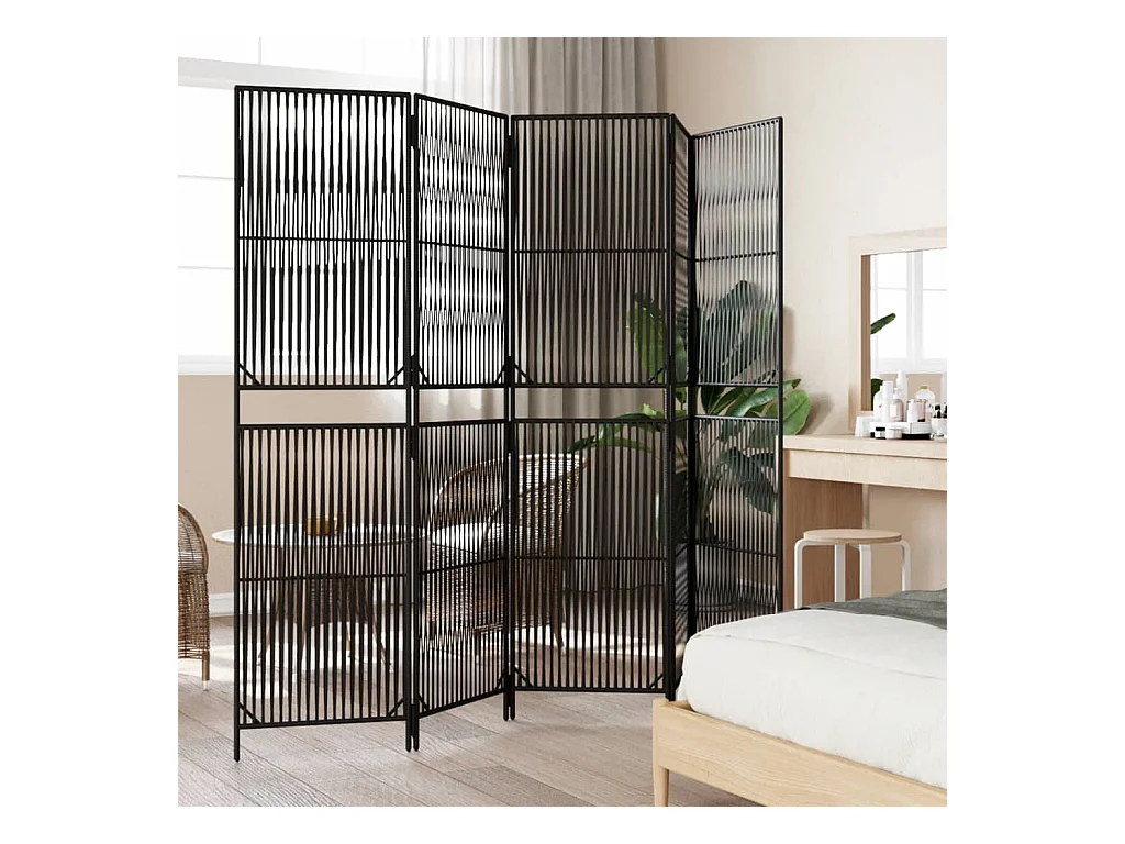 Paravent - Cloison de séparation 4 panneaux noir résine tressée FR94411