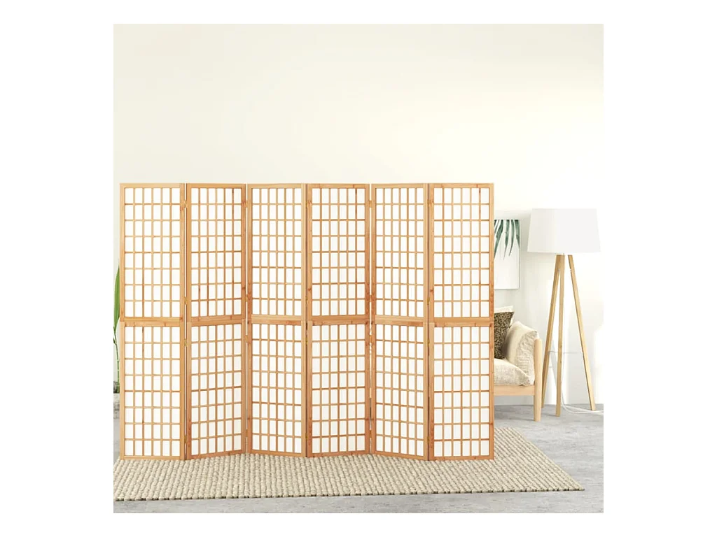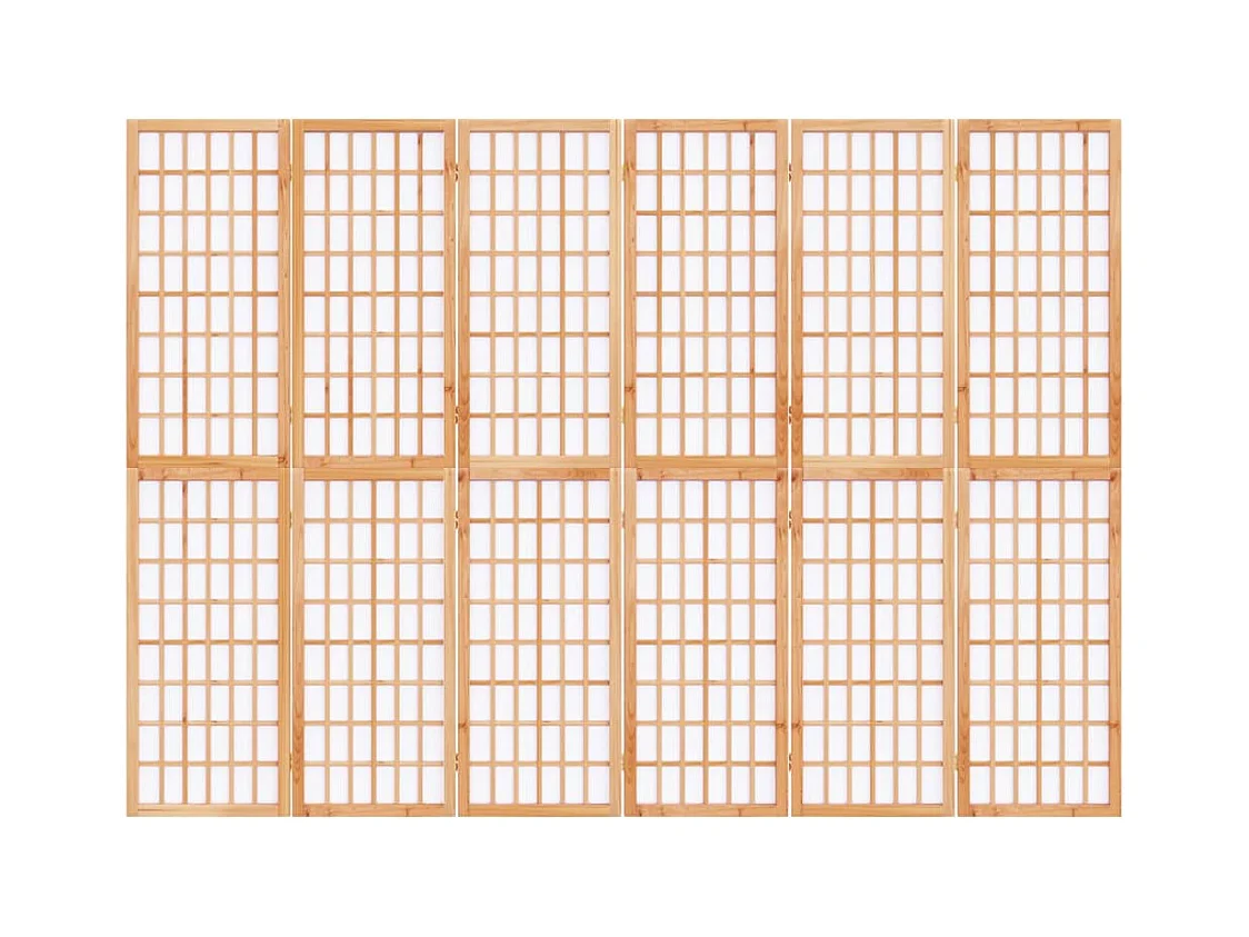 Paravent - Cloison de séparation 6 panneaux marron bois paulownia massif FR22267