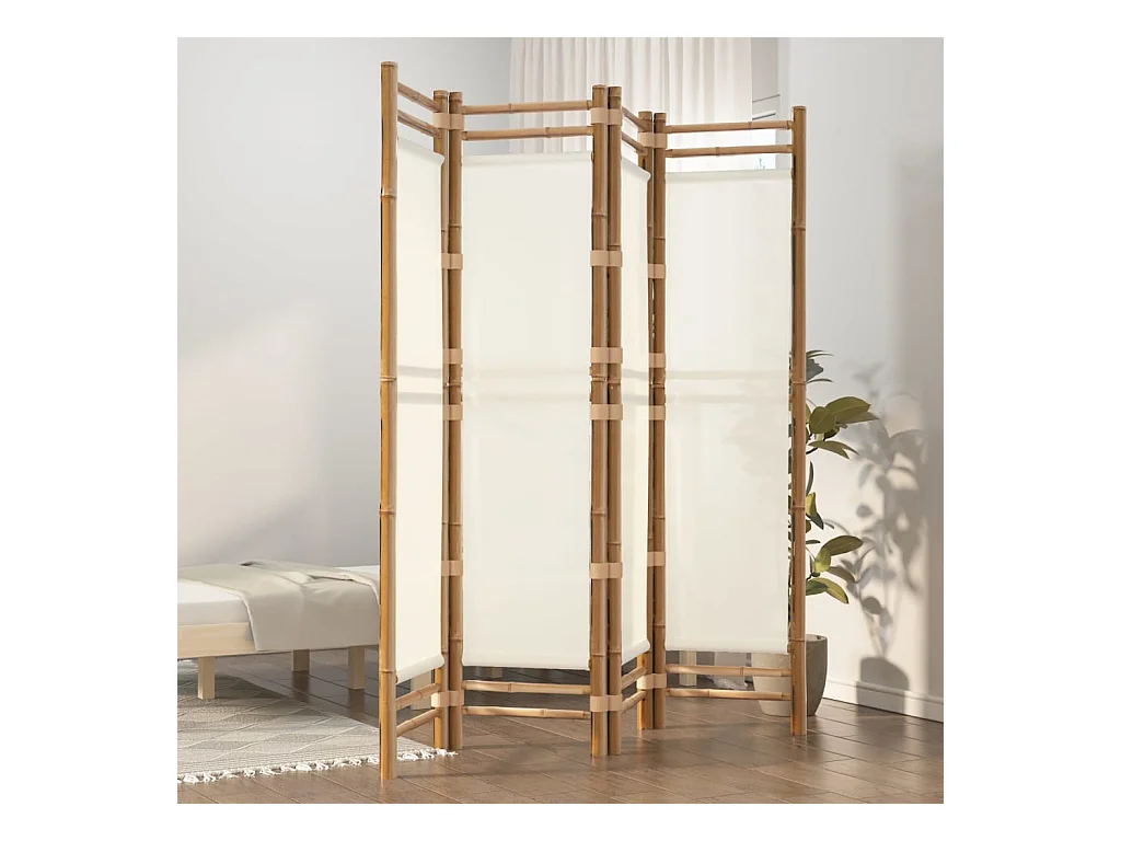 Paravent pliante 4 panneaux 160 cm Bambou et toile OPI4872