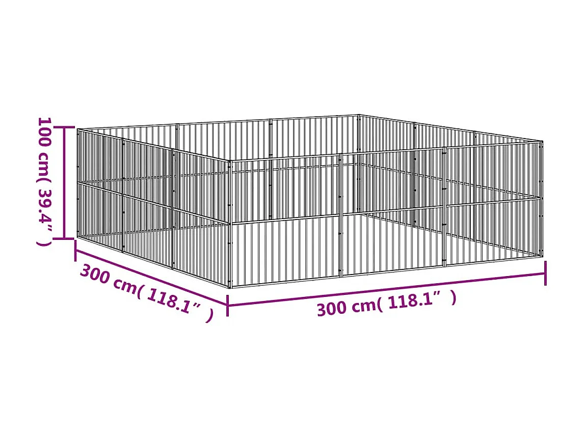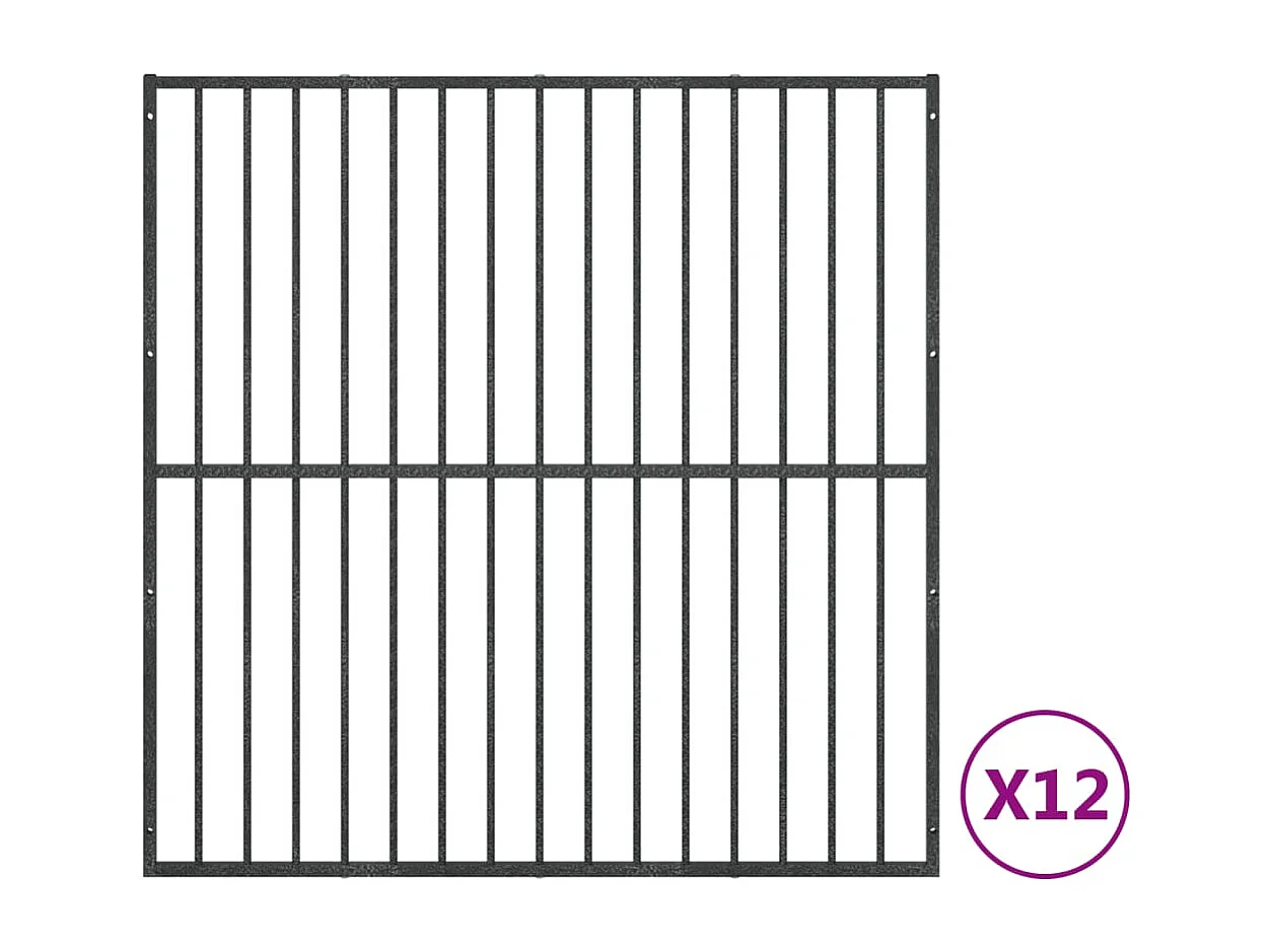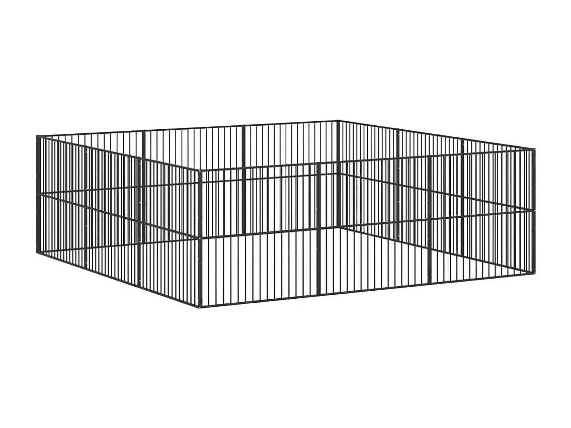 Parc pour chien 12 panneaux noir acier galvanisé