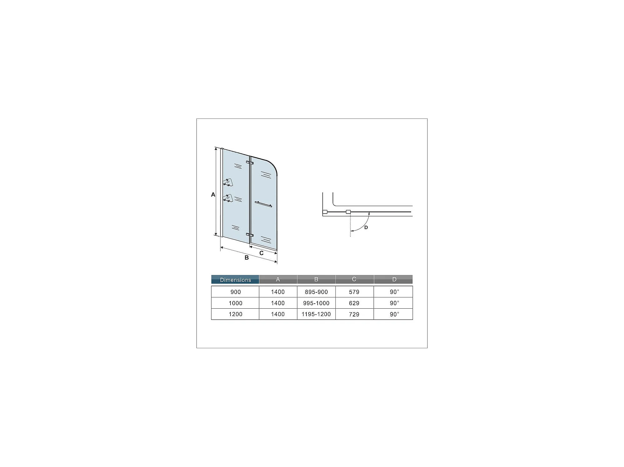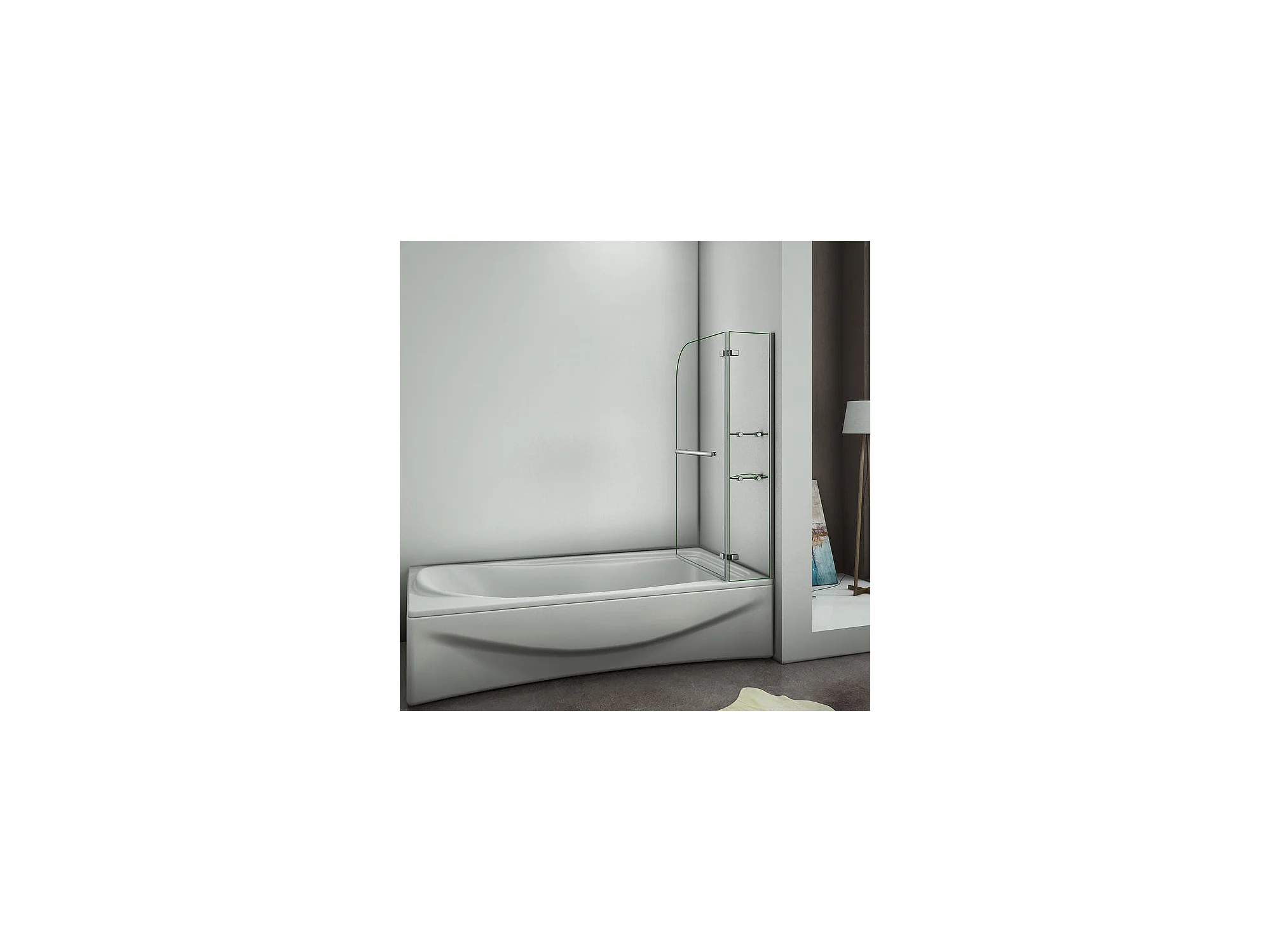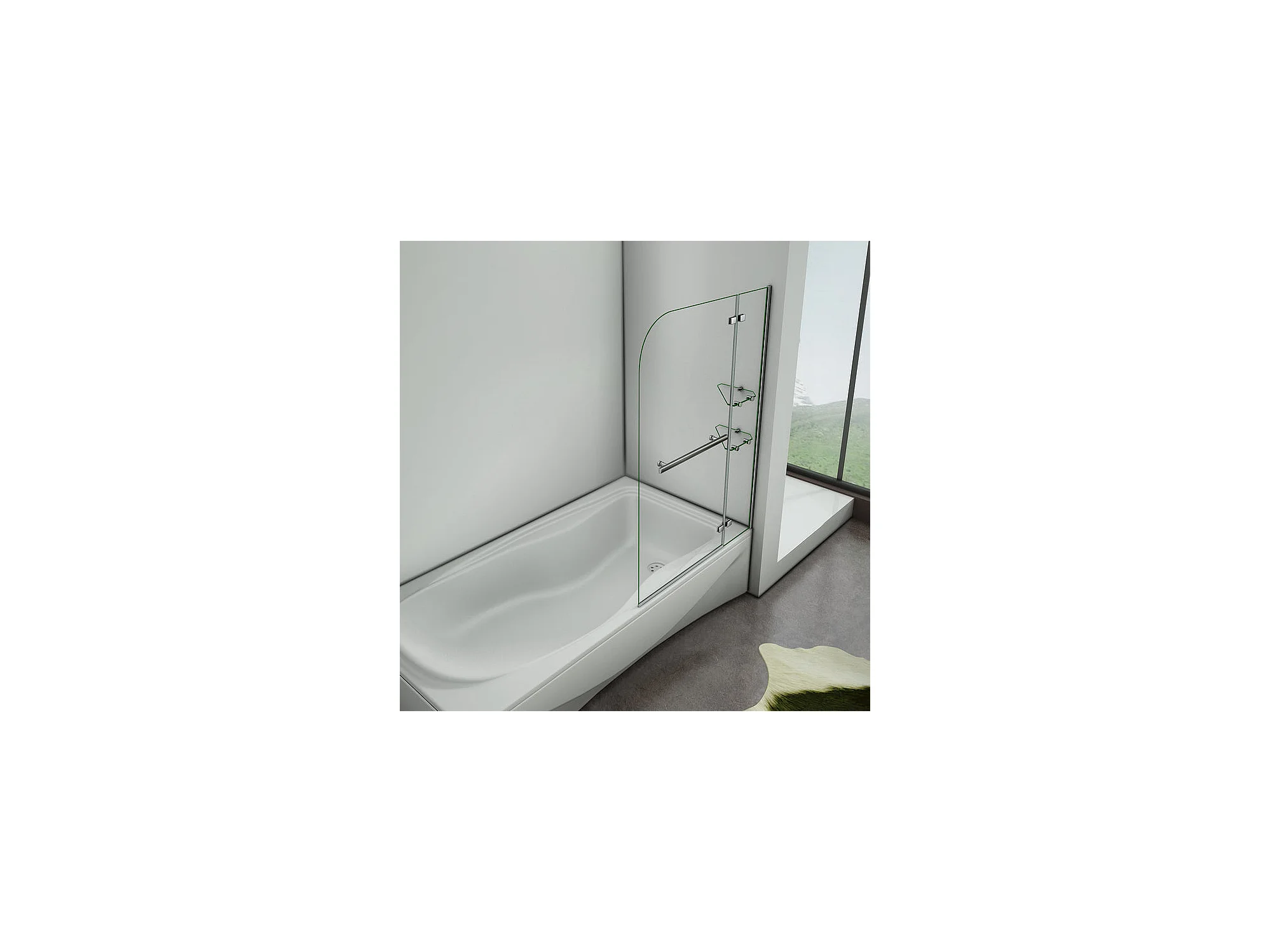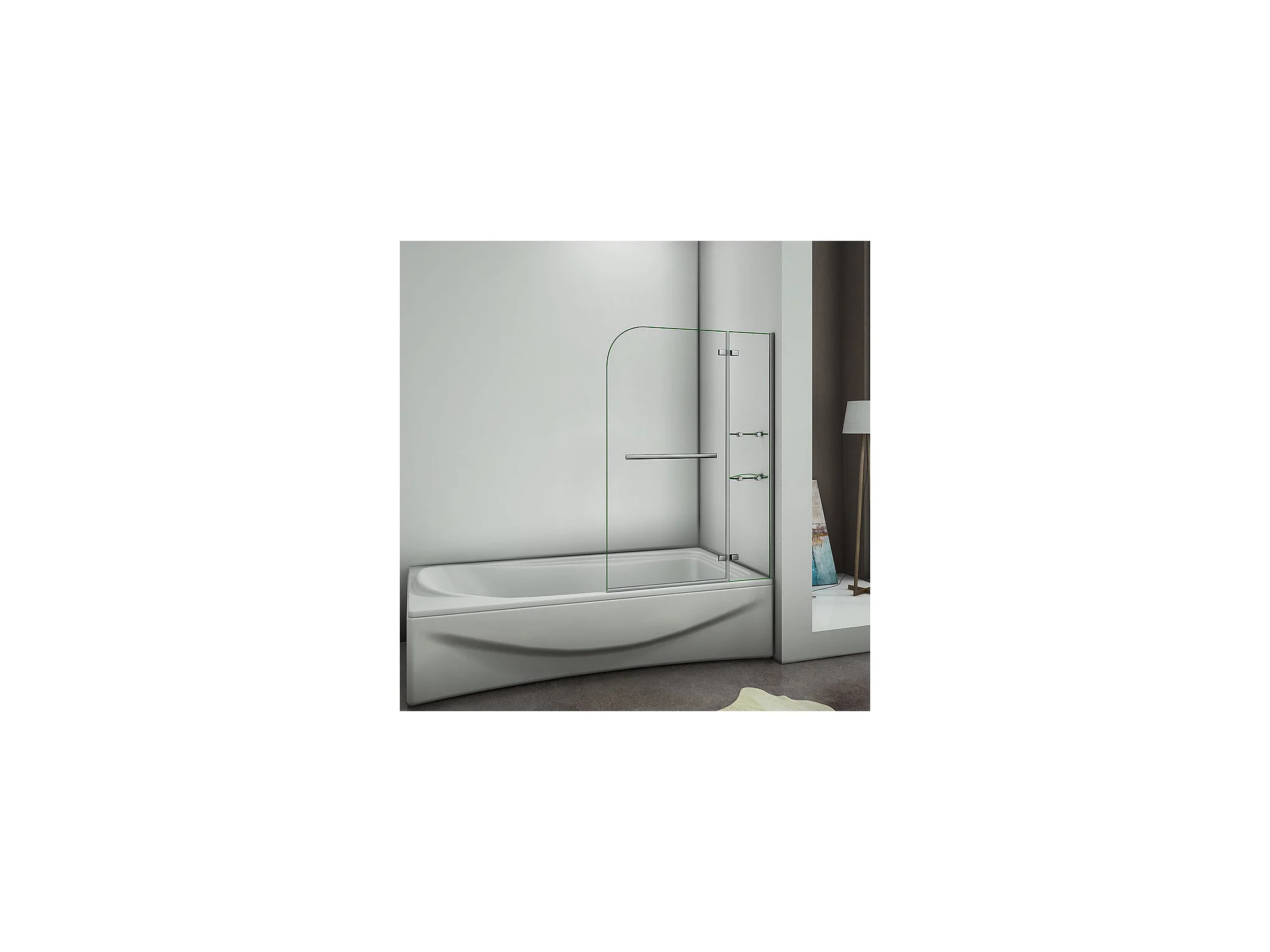 Pare-baignoire 100x140cm pivotant 90° en verre trempé, paroi de baignoire avec porte-serviette et 2 étagères