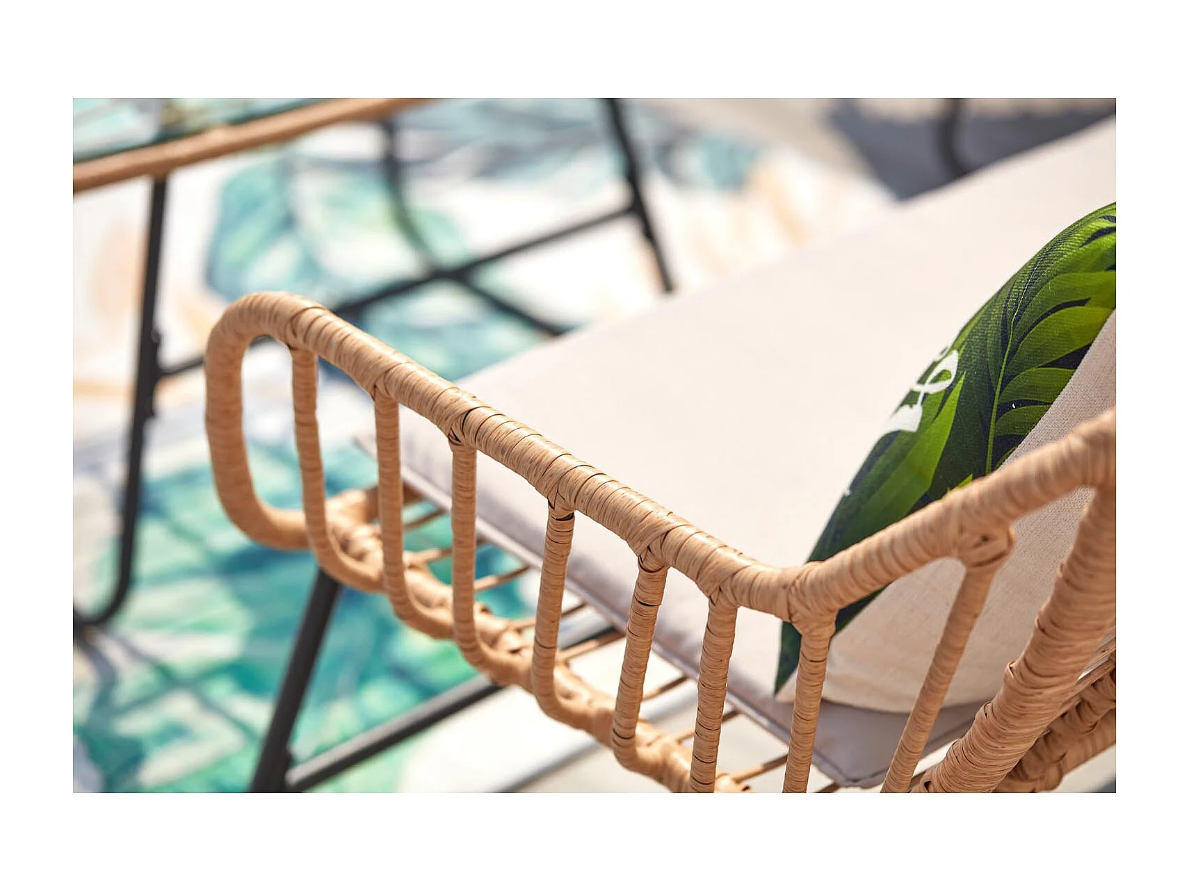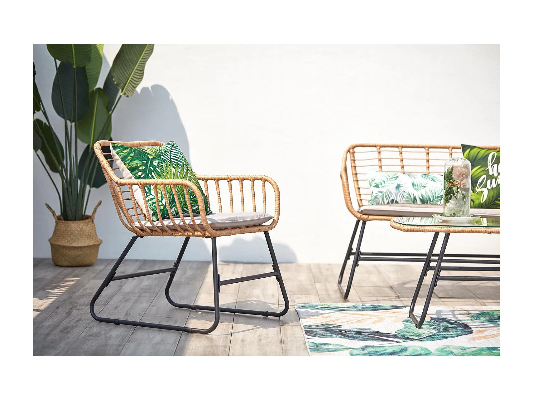Salon de jardin 4 places en rotin et acier beige et noir PAREA
