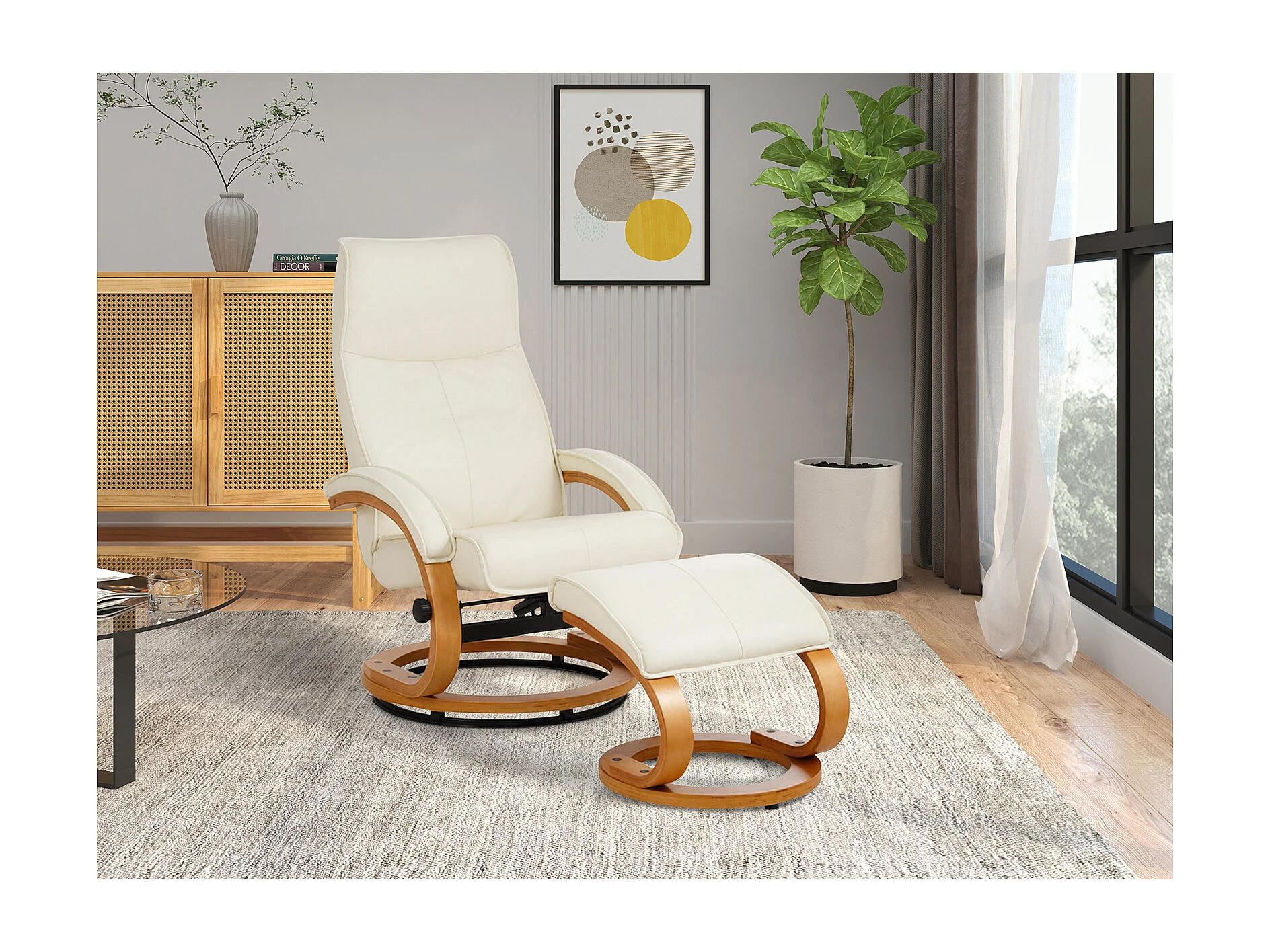 Paris|Fauteuil de relaxation + tabouret Crème