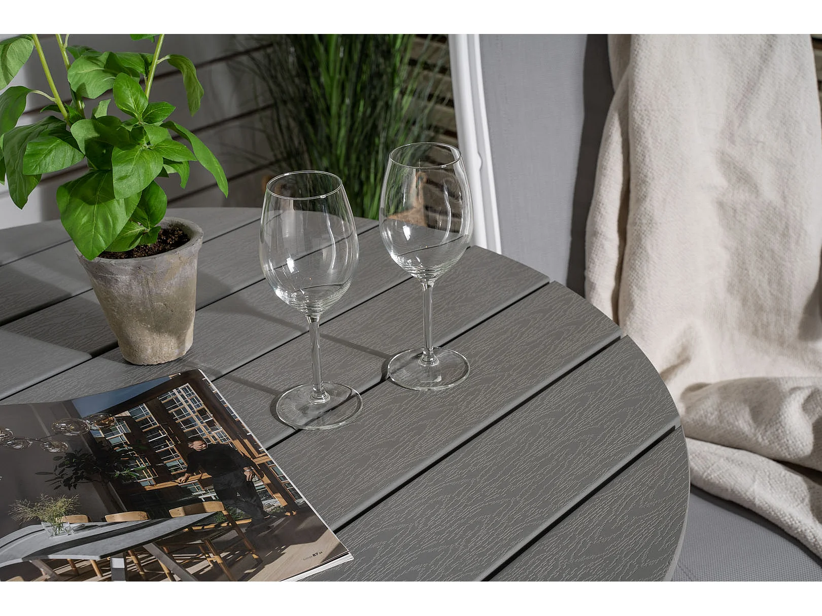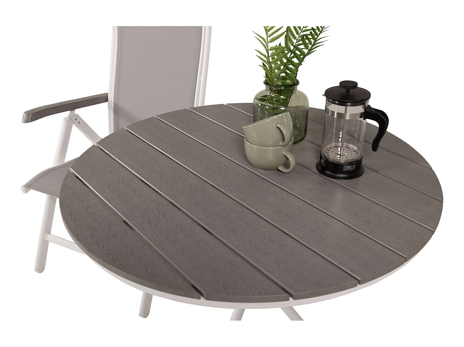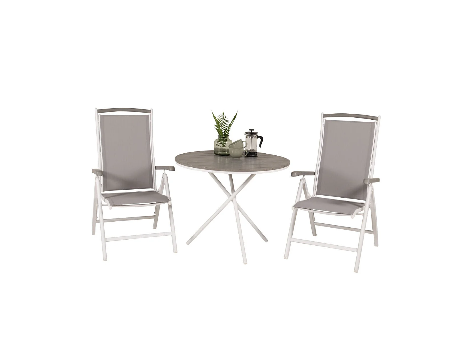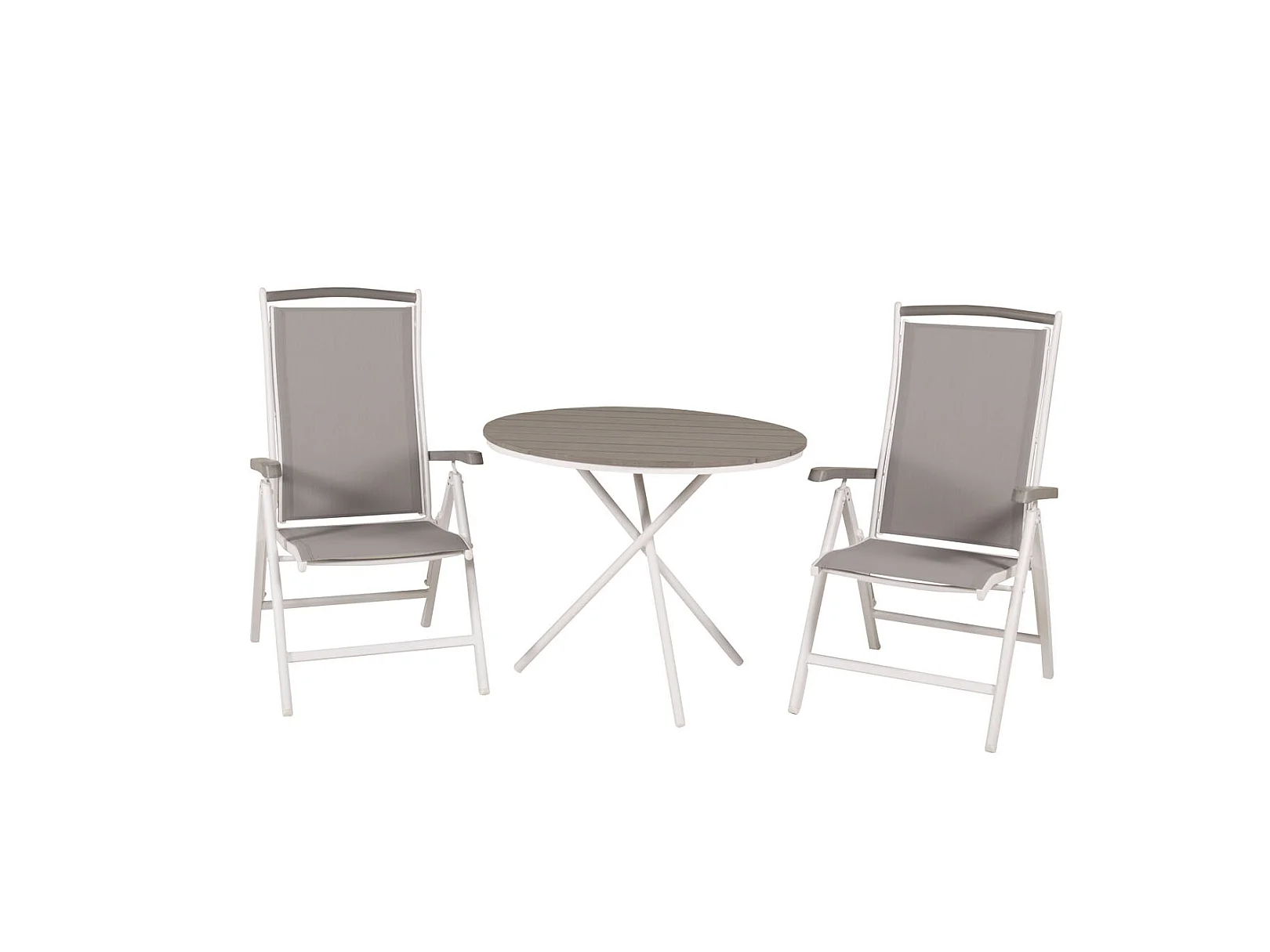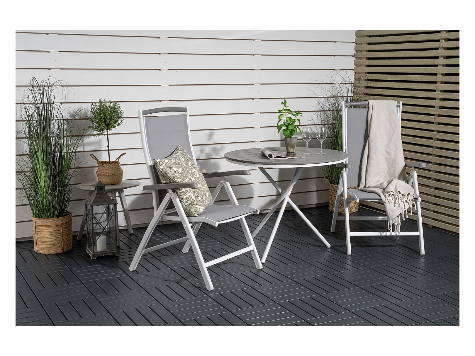 Parma Ensemble table et chaises de jardin, table Ø90cm et 2 chaises 5pos Albany, blanc, gris, crème.