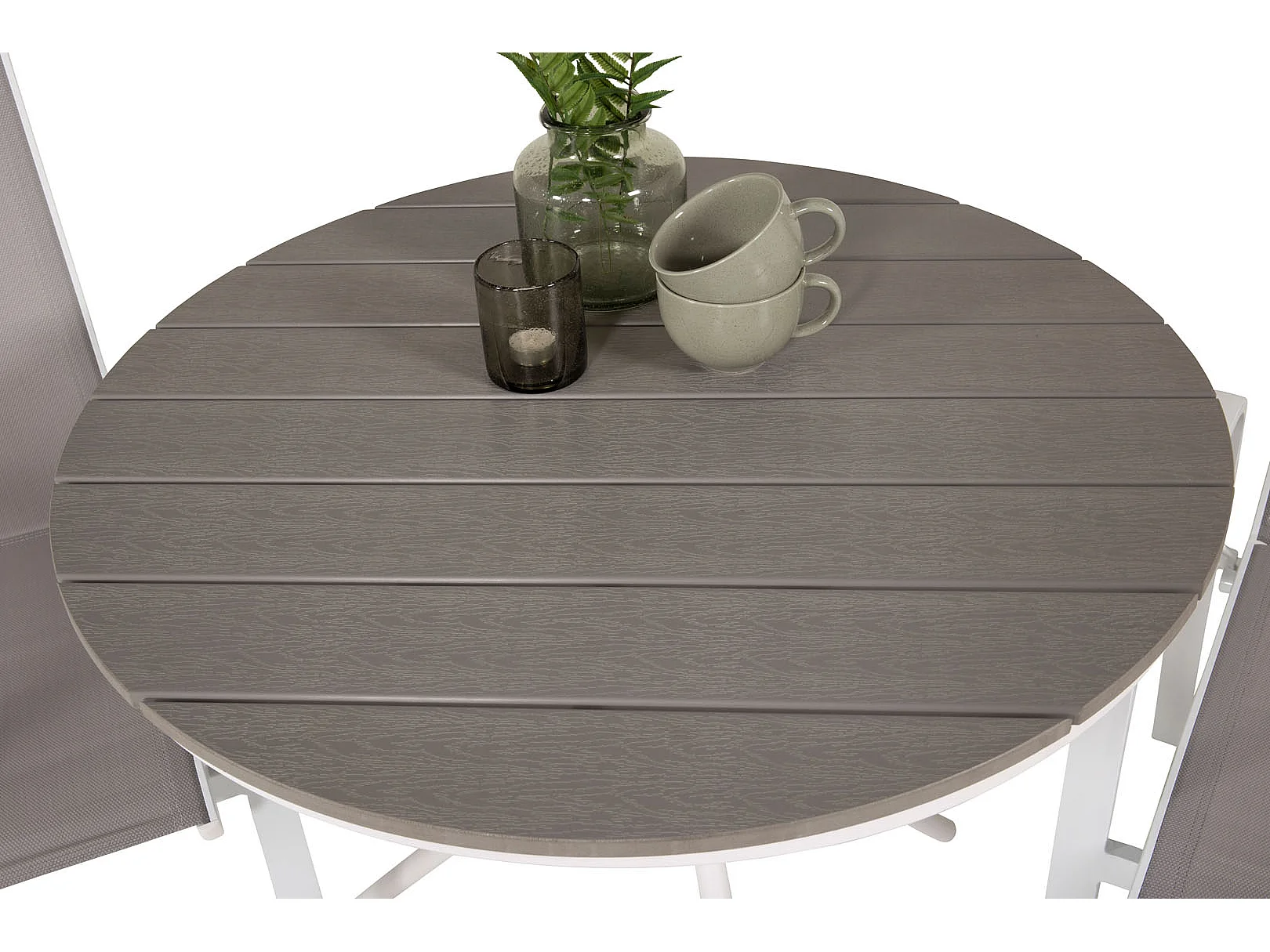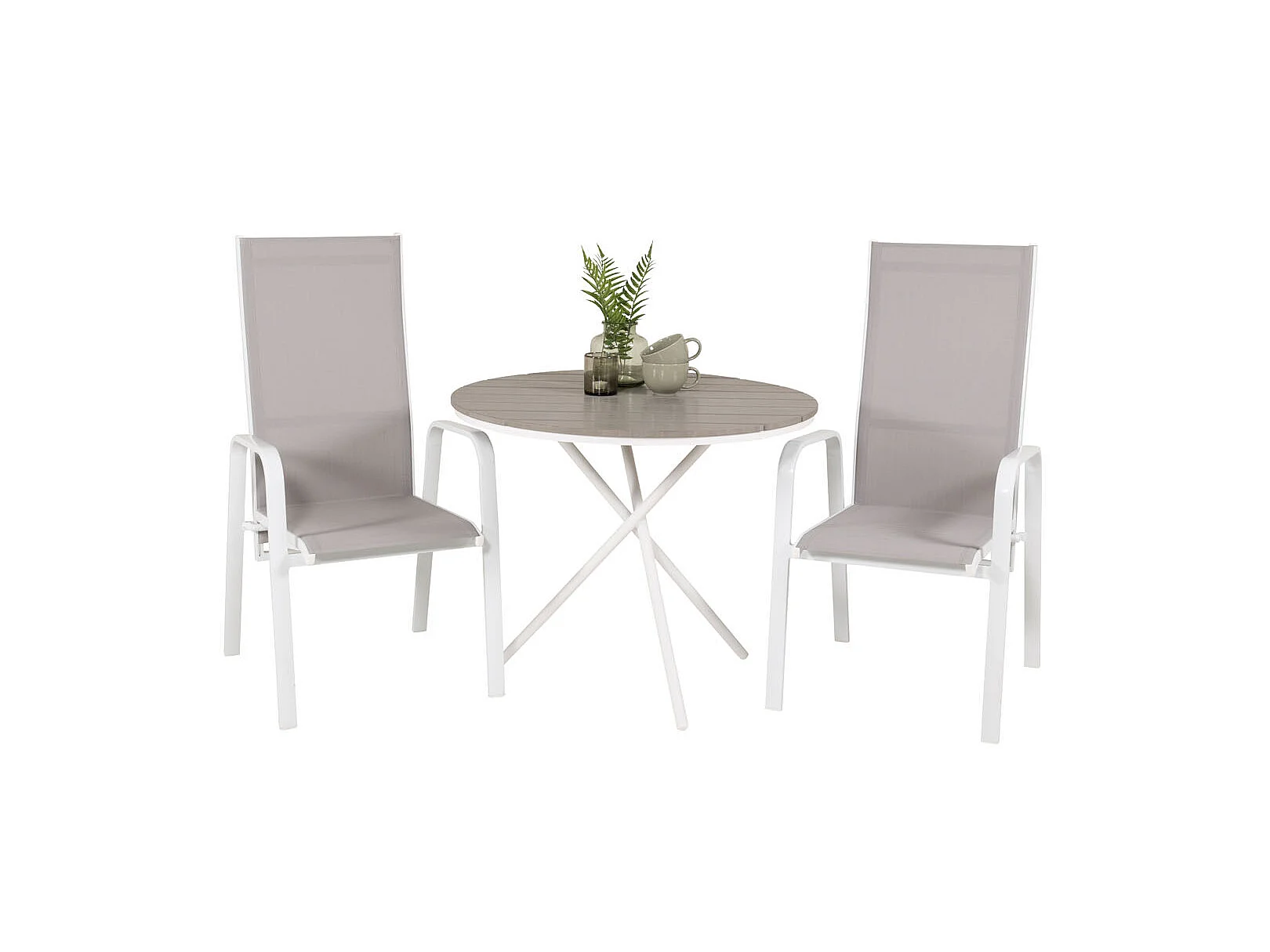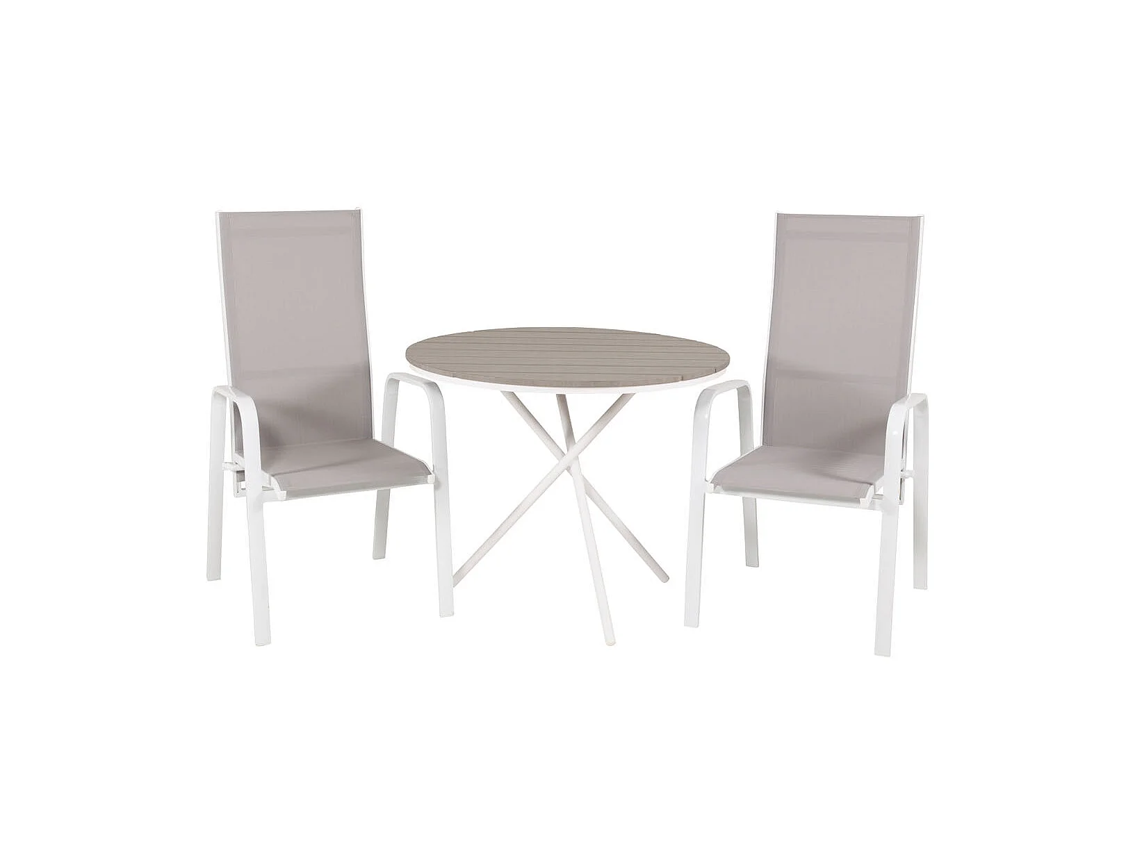 Parma Ensemble table et chaises de jardin, table Ø90cm et 2 chaises Copacabana, blanc, gris, crème.