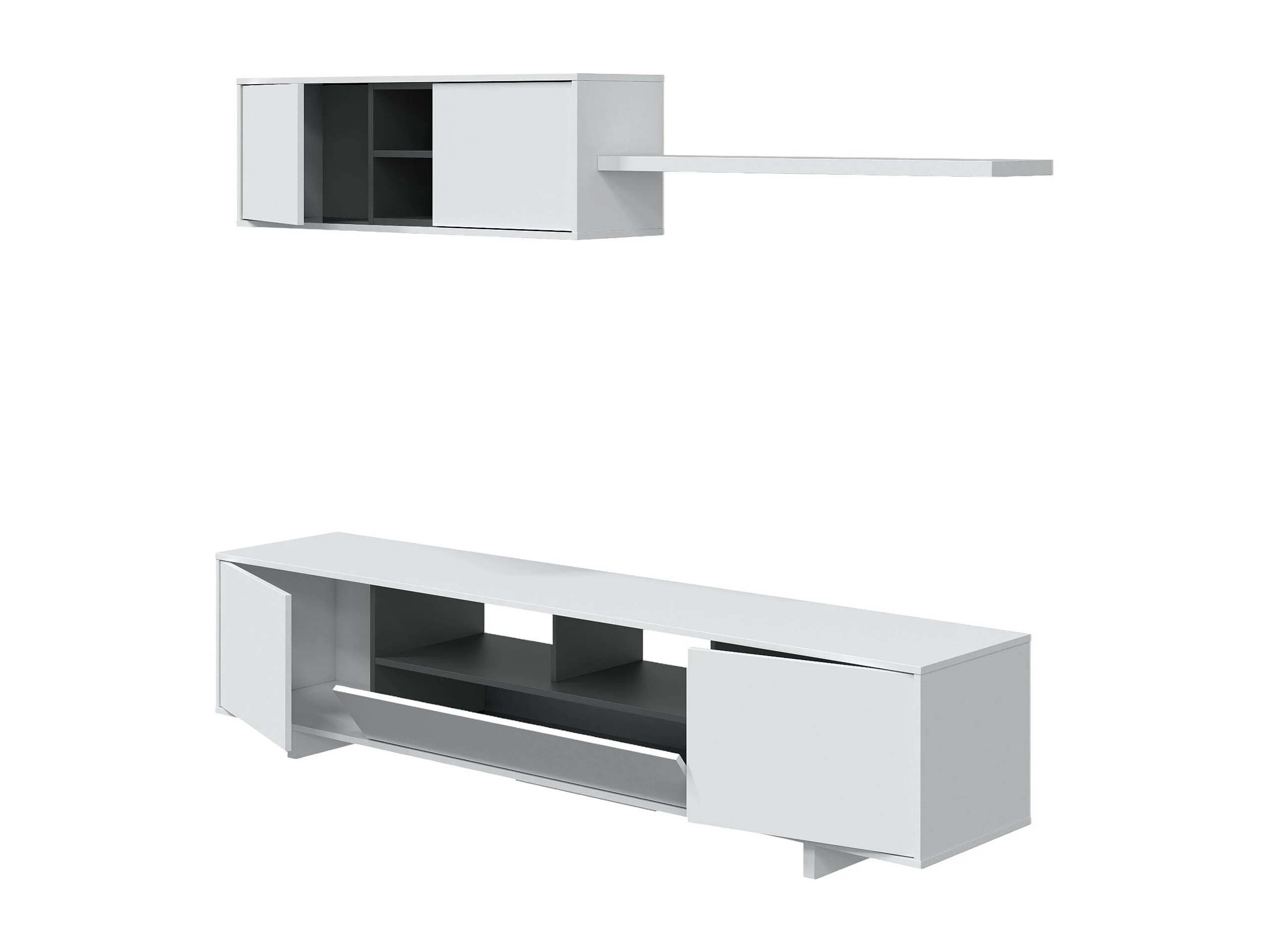 Système mural Dafanti, meuble TV, composition d'ensemble de salon, ensemble de salon avec unité murale, 200x41h46 cm, blanc brillant