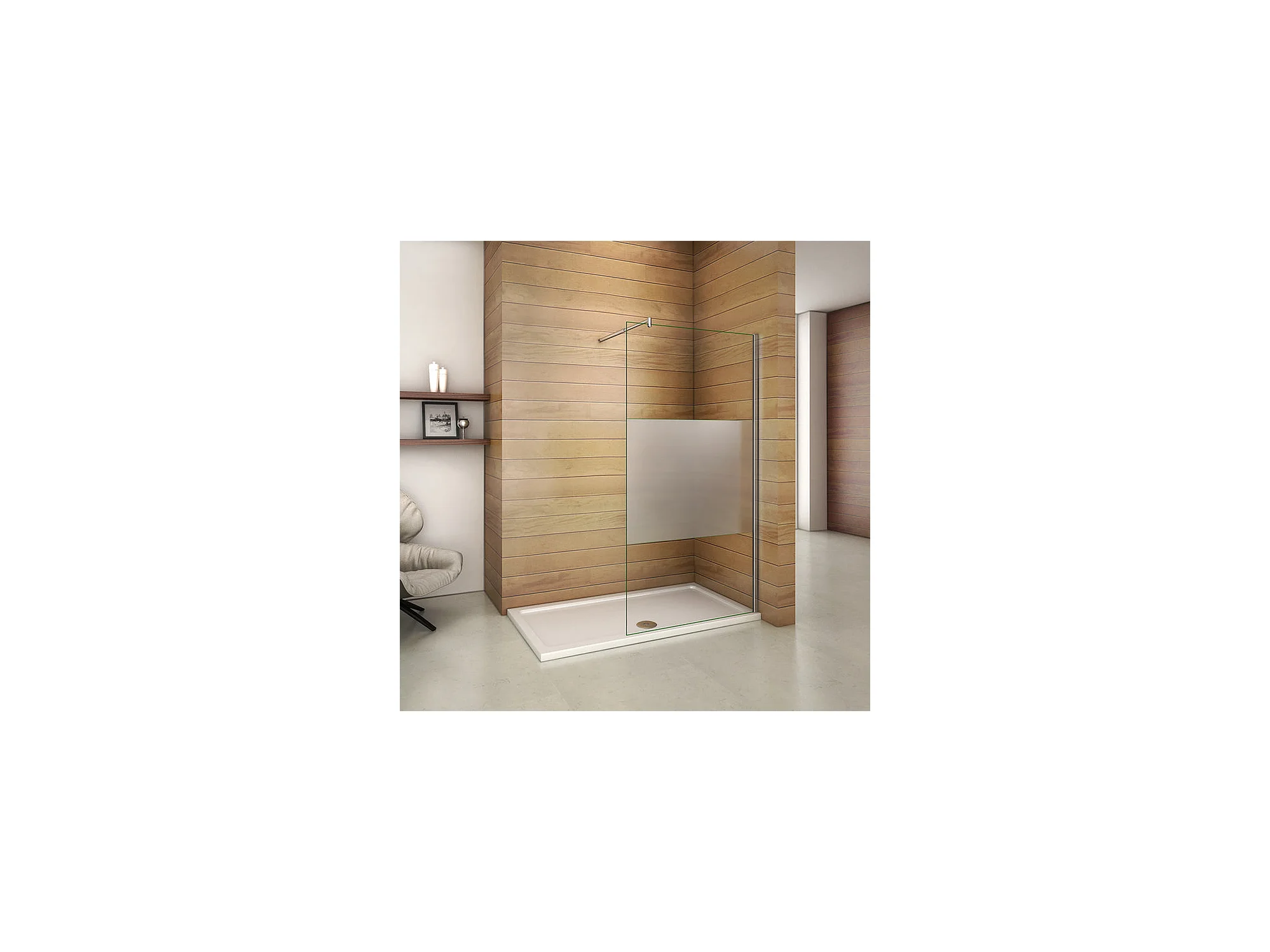 Paroi de douche à l'italienne 100x200cm avec barre de fixation au plafond 203-320cm, en 8mm verre bande centrale dépolie