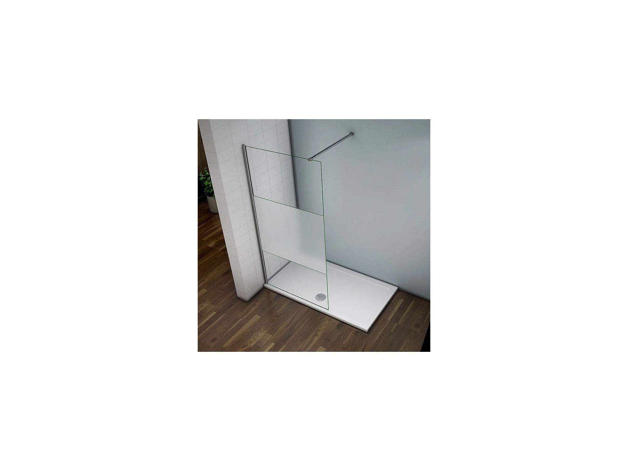 Paroi de douche à l'italienne 110x200cm avec barre de fixation 140cm recoupable, en 8mm verre bande centrale dépolie