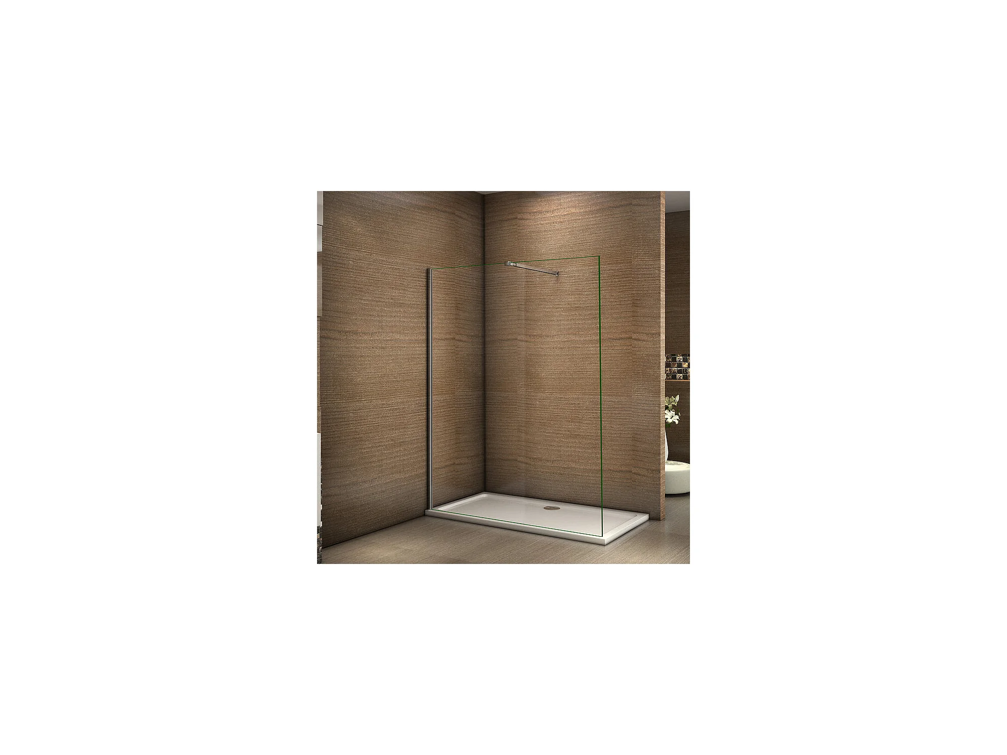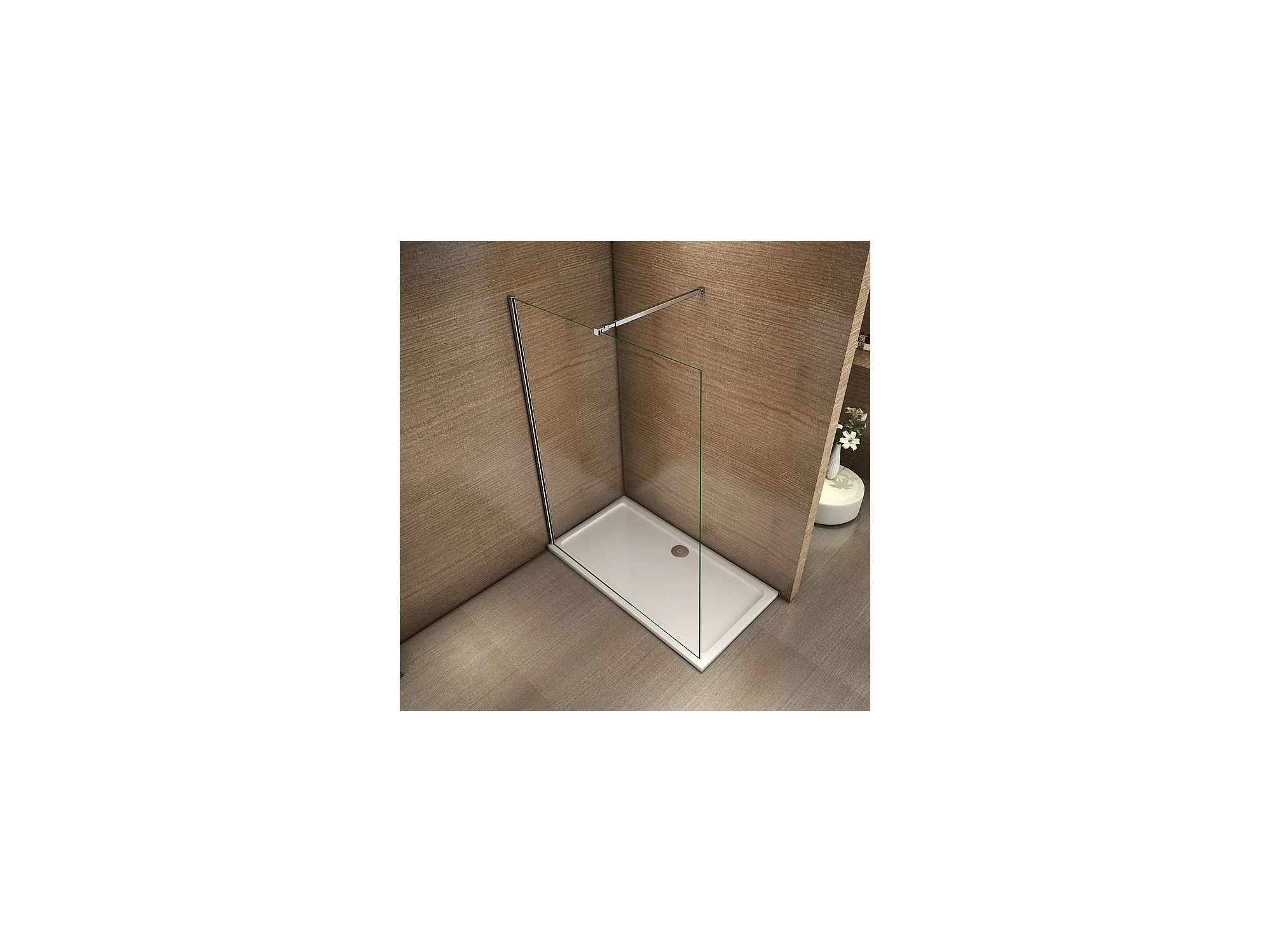 Paroi de douche à l'italienne 110x200cm avec barre de fixation 73-120cm en carré - Chromé - Verre 8mm trempé transparent