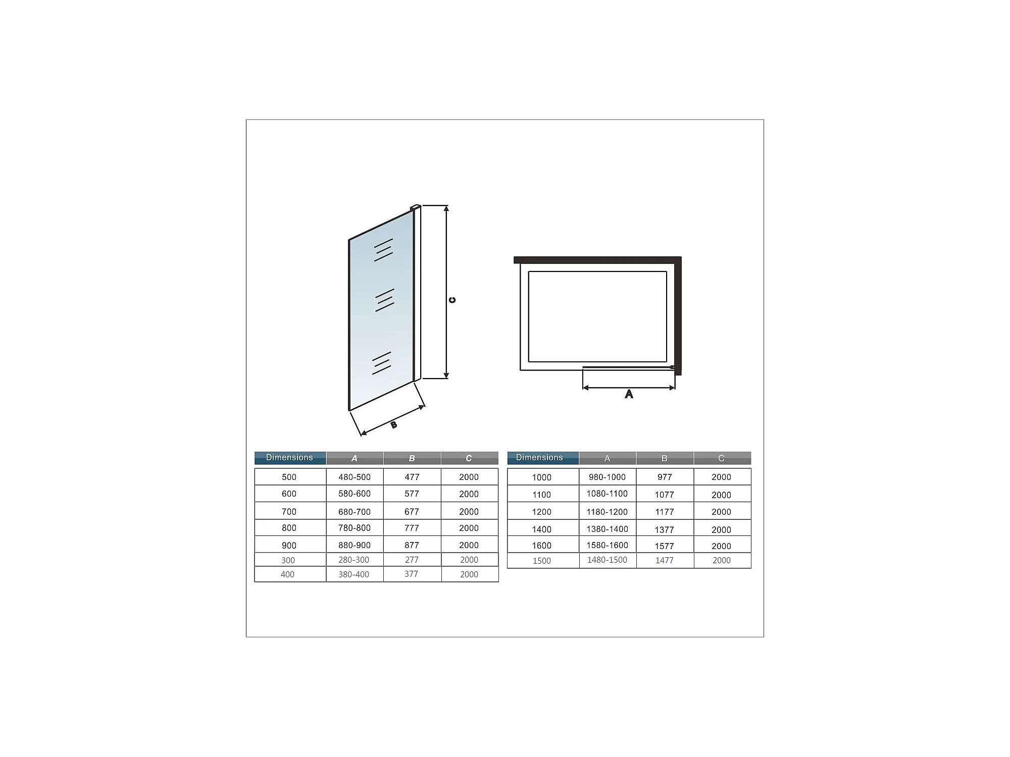 Paroi de douche à l'italienne 110x200cm en 8mm verre trempé anticalcaire, sans barre de fixation
