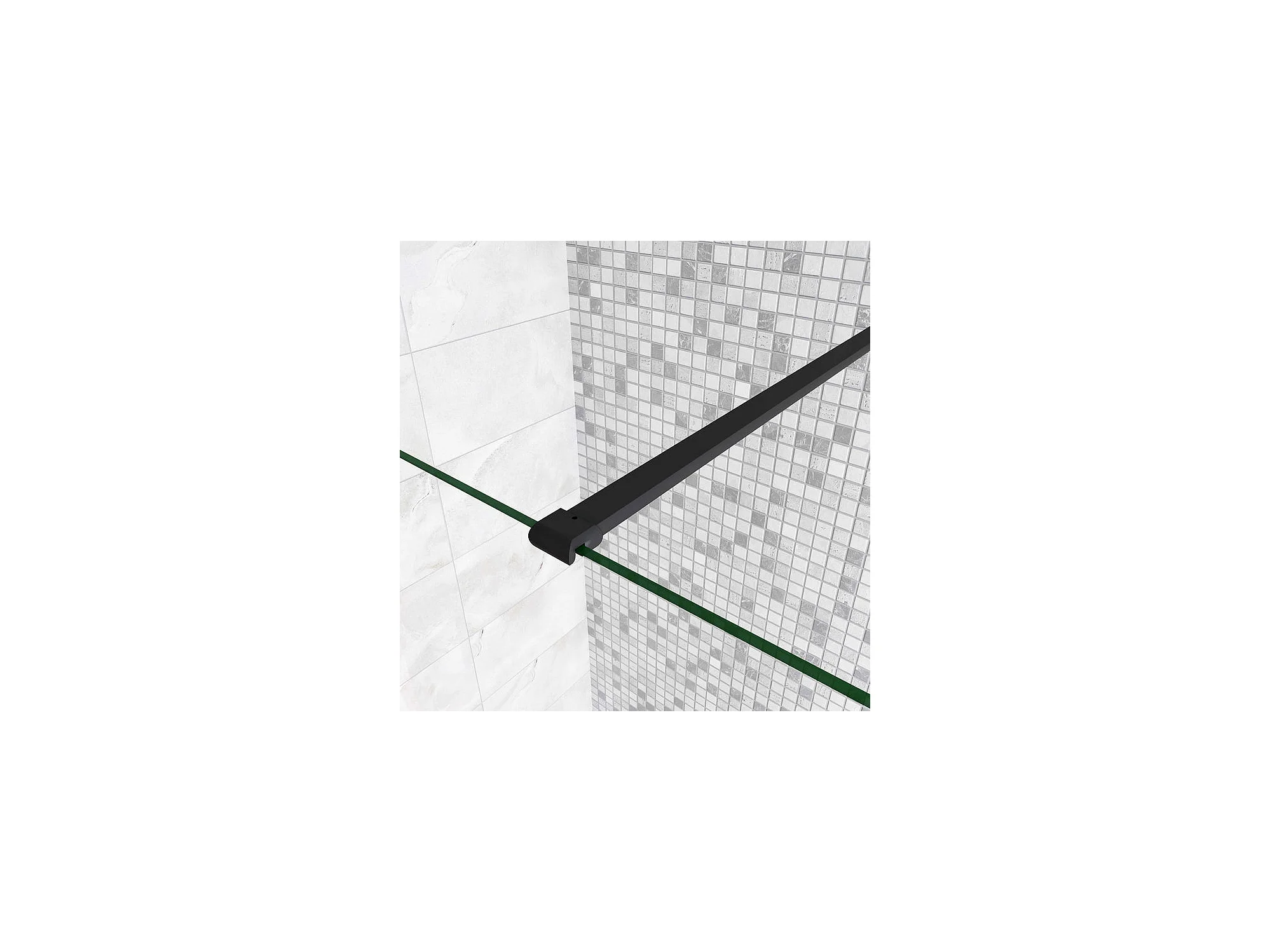 Paroi de douche à l'italienne 120x200cm en verre 8mm securit anticalcaire, avec barre de fixation 73-120cm en carré - Noir Mat