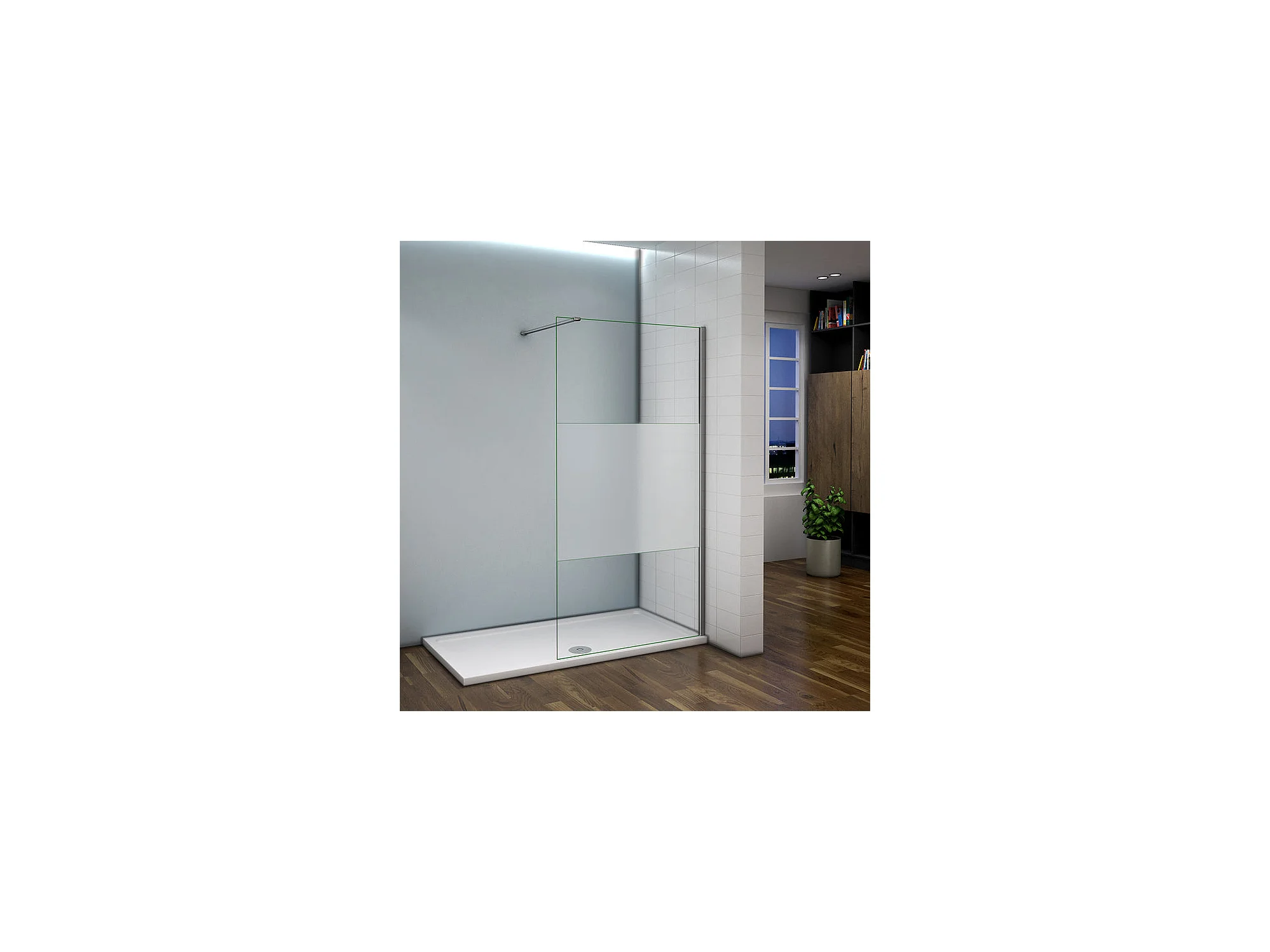 Paroi de douche à l'italienne 120x200cm avec barre de fixation 140cm recoupable, en 8mm verre bande centrale dépolie
