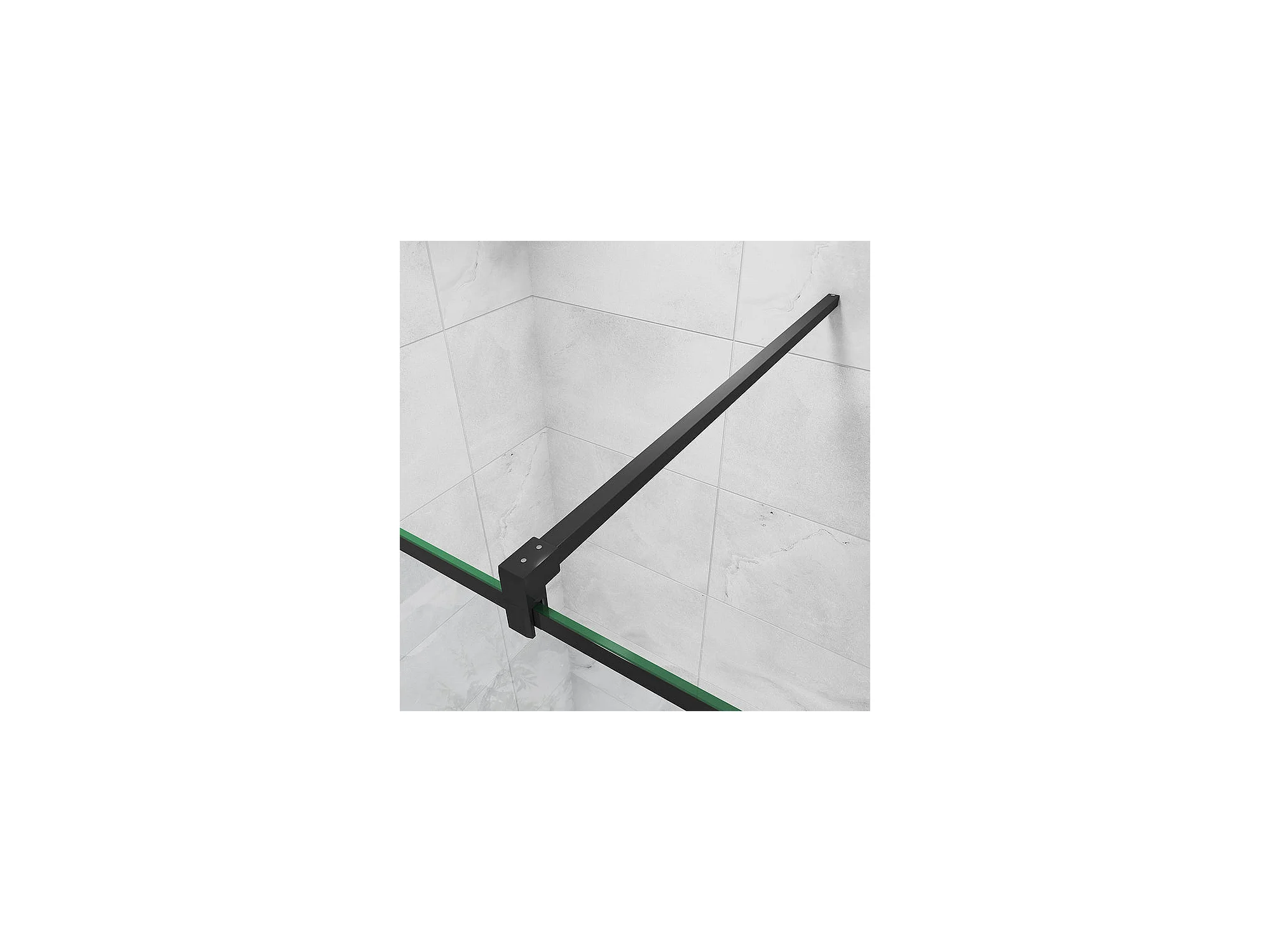 Paroi de douche 120x200cm fixe à l'italienne avec barre de fixation noire carrée 90cm, en 8mm verre anticalcaire style moderne