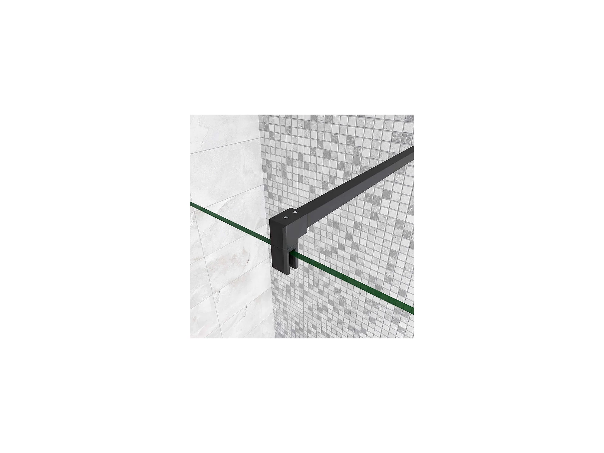 Paroi de douche fixe à l'italienne 70+30x200cm avec retour pivotant - Noir - avec barre de fixation 73-120cm en carré