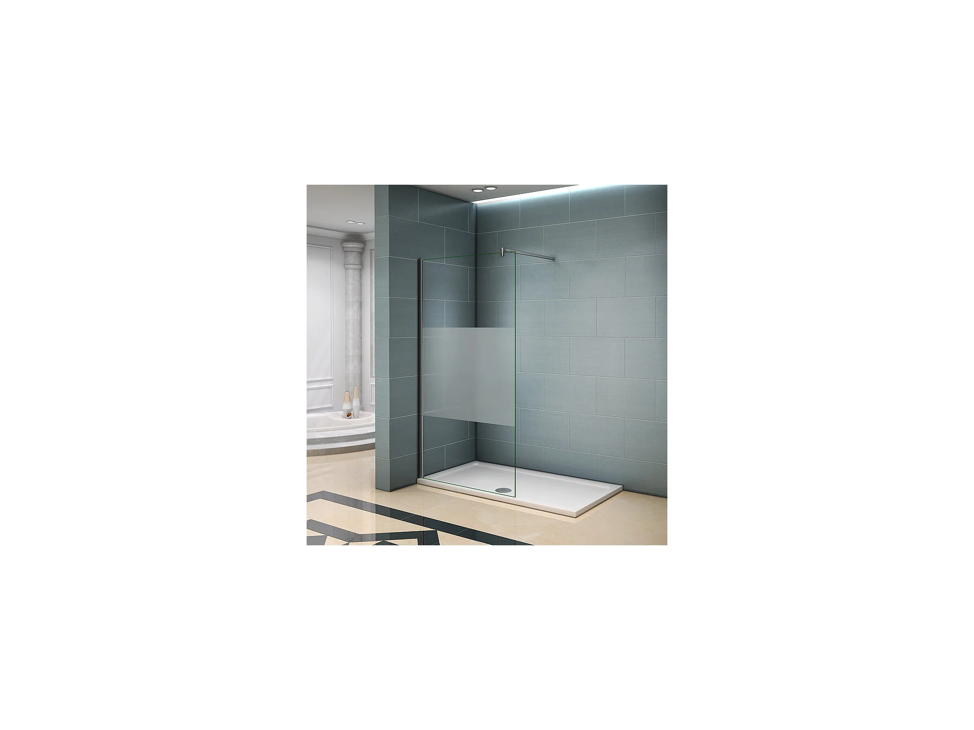 Paroi de douche à l'italienne 140x200cm avec barre de fixation 140cm recoupable, en 8mm verre bande centrale dépolie