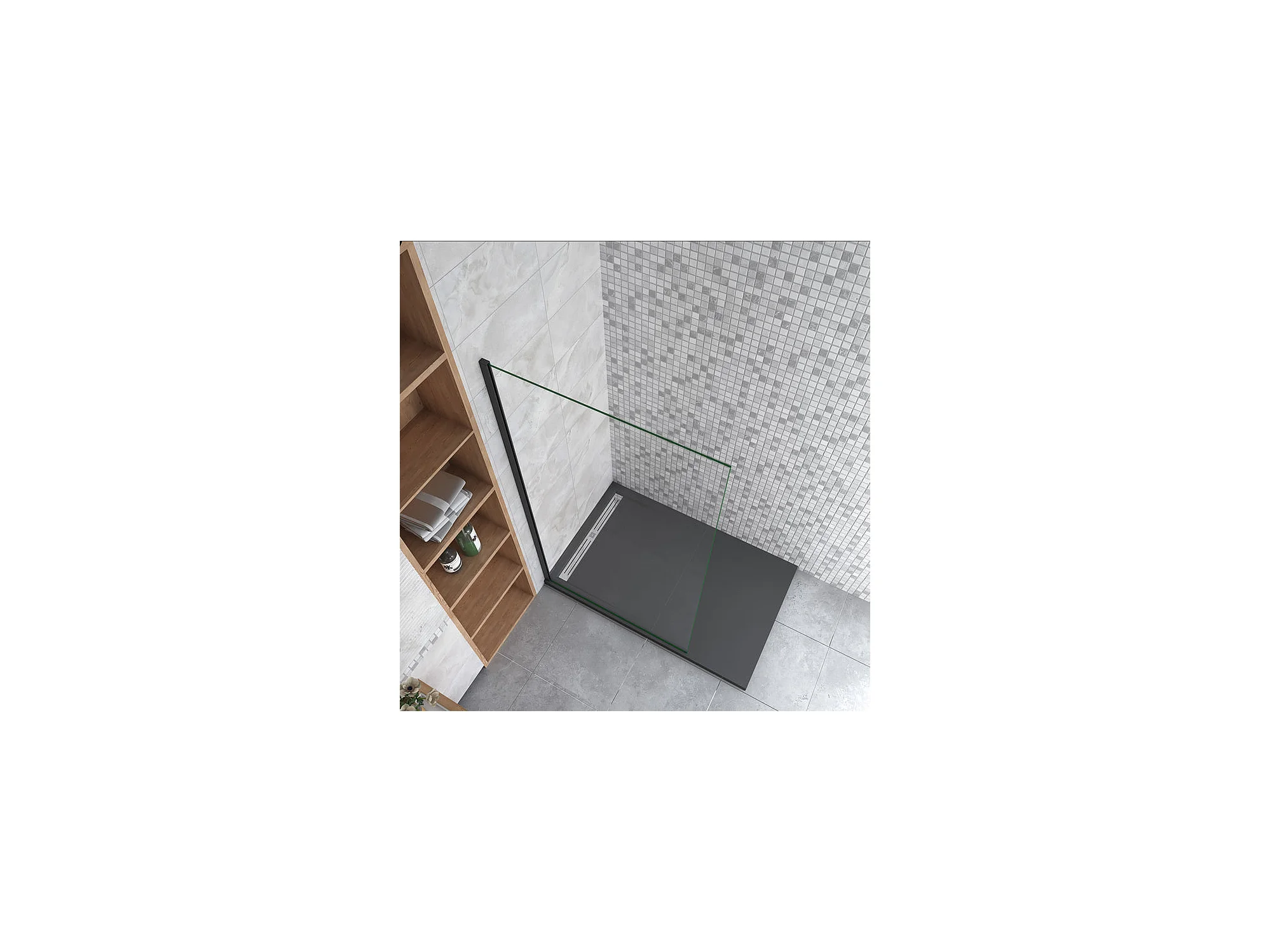 Paroi de douche fixe à l'italienne 140x200cm - Noir Mat - Verre 8mm anticalcaire, sans barre de fixation