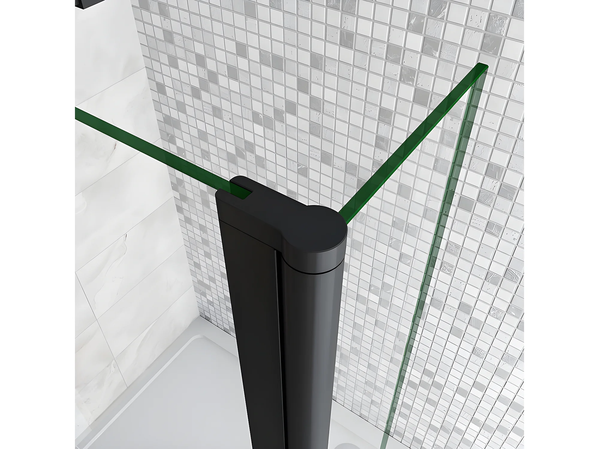 Paroi de douche à l'italienne avec retour pivotant 150+40x200cm avec barre de fixation 140cm en carré - Noir Mat - 8mm verre anticalcaire