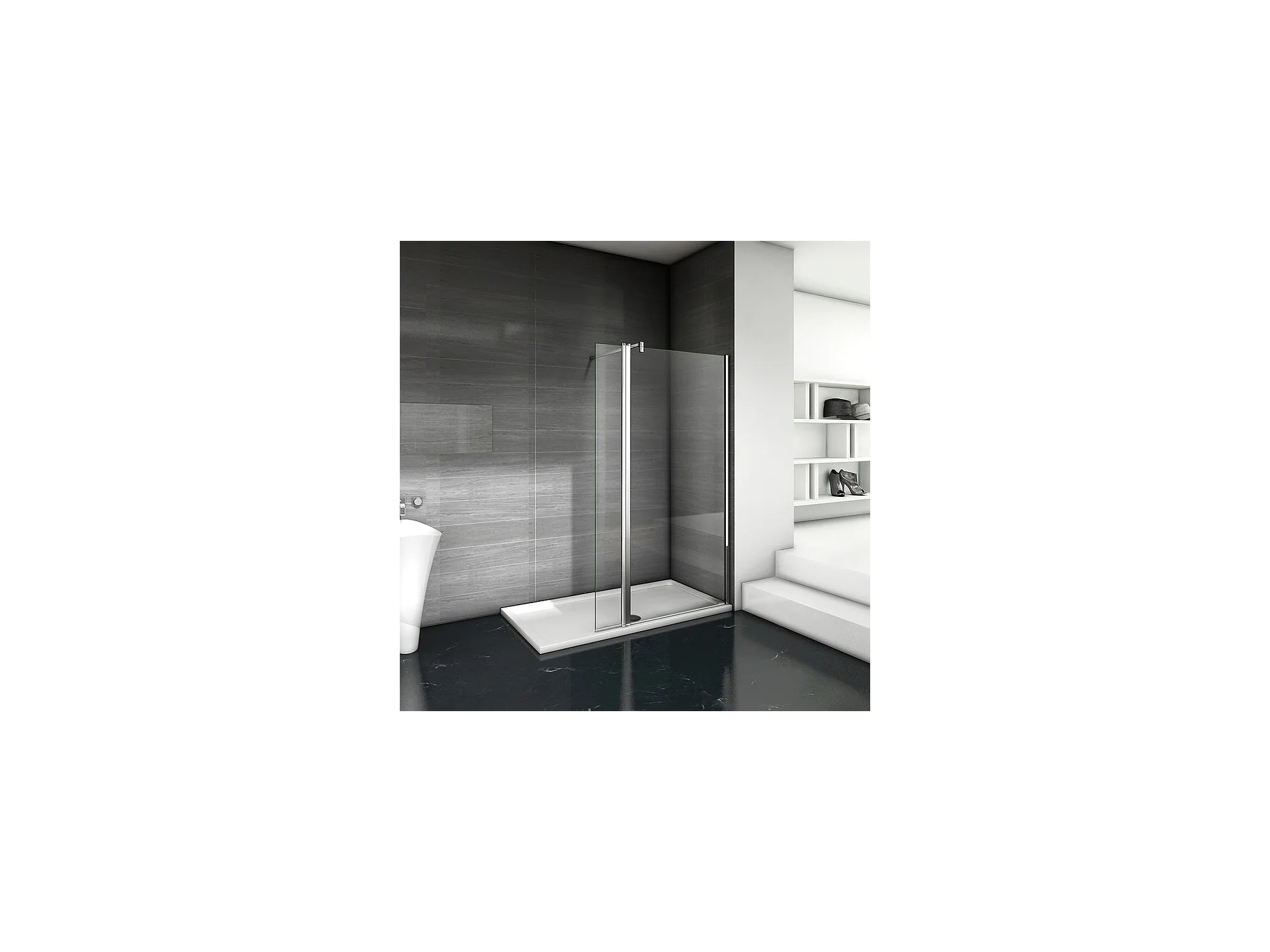 Paroi de douche à l'italienne 150+40x200cm avec retour pivotant - Verre 8mm trempé - Avec barre de fixation 90cm recoupable
