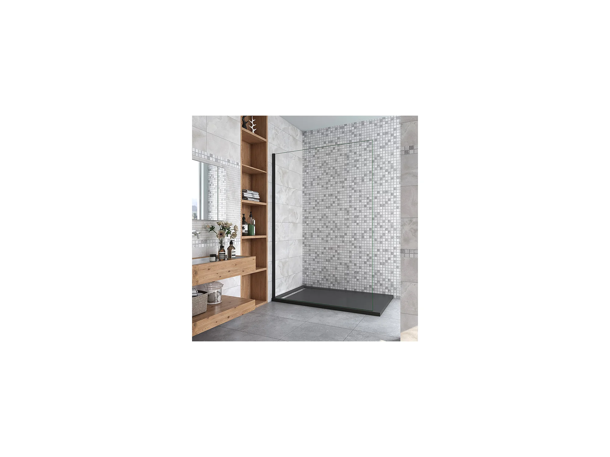 Paroi de douche fixe à l'italienne 150x200cm - Noir Mat - Verre 8mm anticalcaire, sans barre de fixation