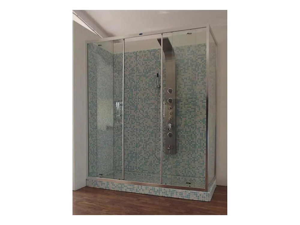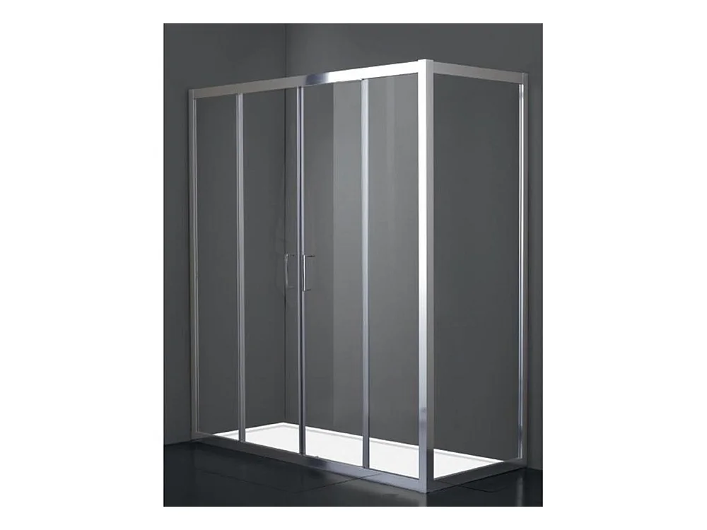 Paroi de Douche 170x90 cm Haut 200cm 1 Cristal Fixe + Ap. 4 cristaux centraux, profil chromé transparent