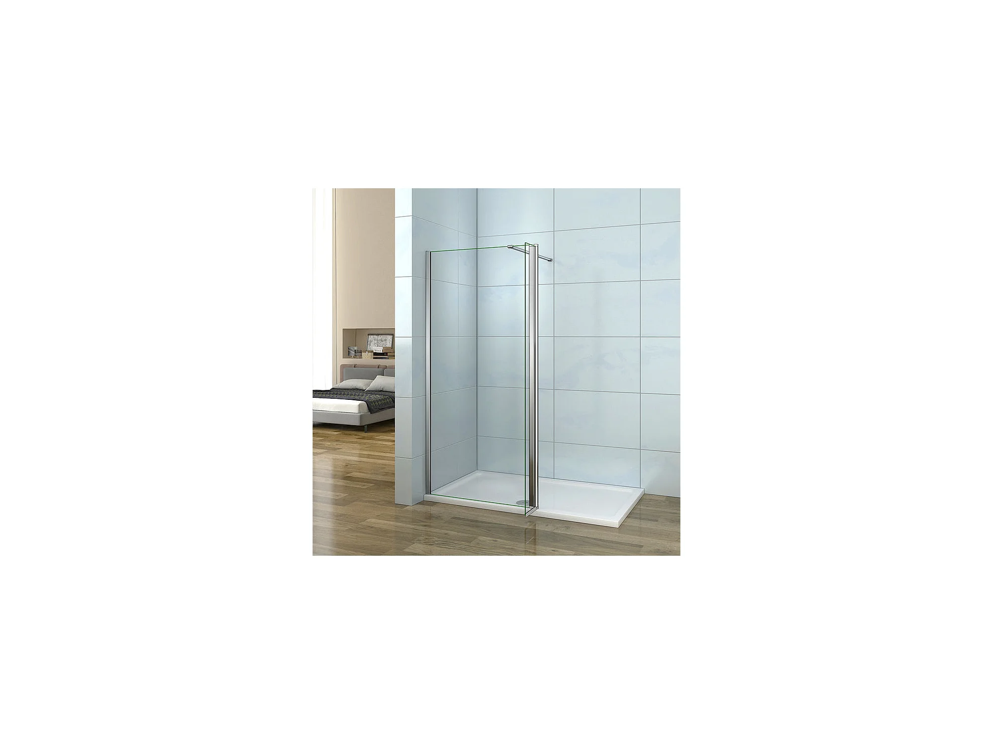 Paroi de douche à l'italienne 50+30x200cm avec retour pivotant - Verre 8mm trempé - Avec barre de fixation 90cm recoupable