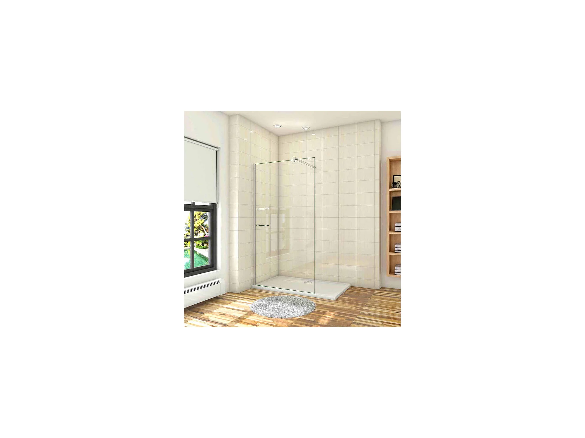 Paroi de douche à l'italienne 70x200cm avec barre de fixation 90cm recoupable - Chromé - Verre 8mm trempé transparent