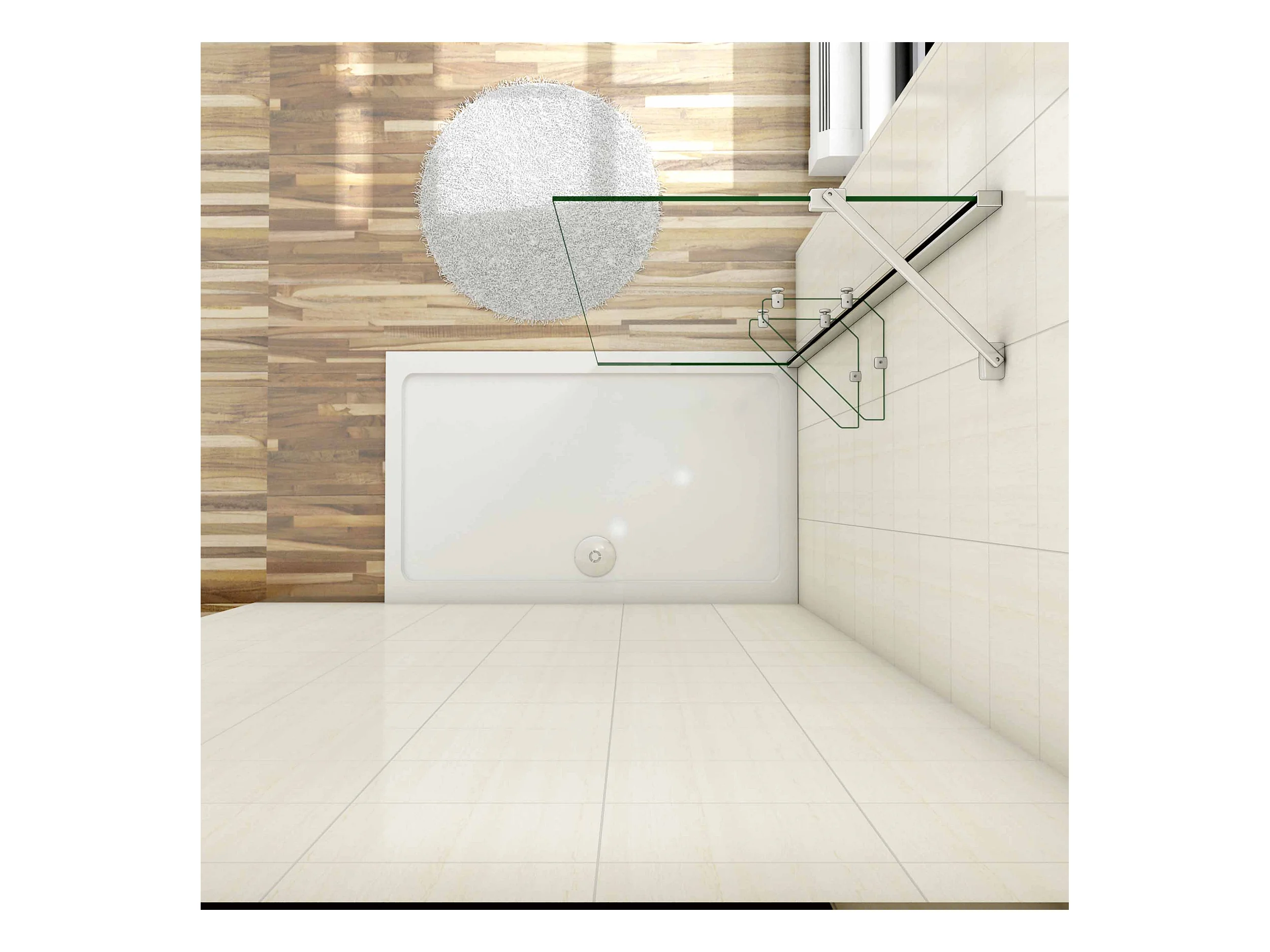 Paroi de douche à l'italienne 70x190cm avec étagères et barre de fixation 90cm recoupable, en 8mm verre anticalcaire