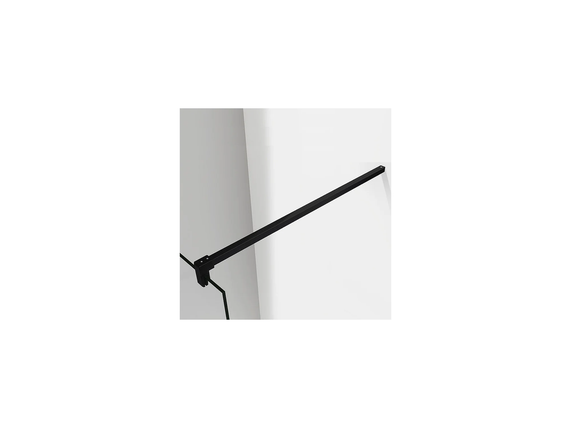 Paroi de douche à l'italienne 90x200cm en verre 8mm securit anticalcaire, avec barre de fixation 140cm en carré - Noir Mat
