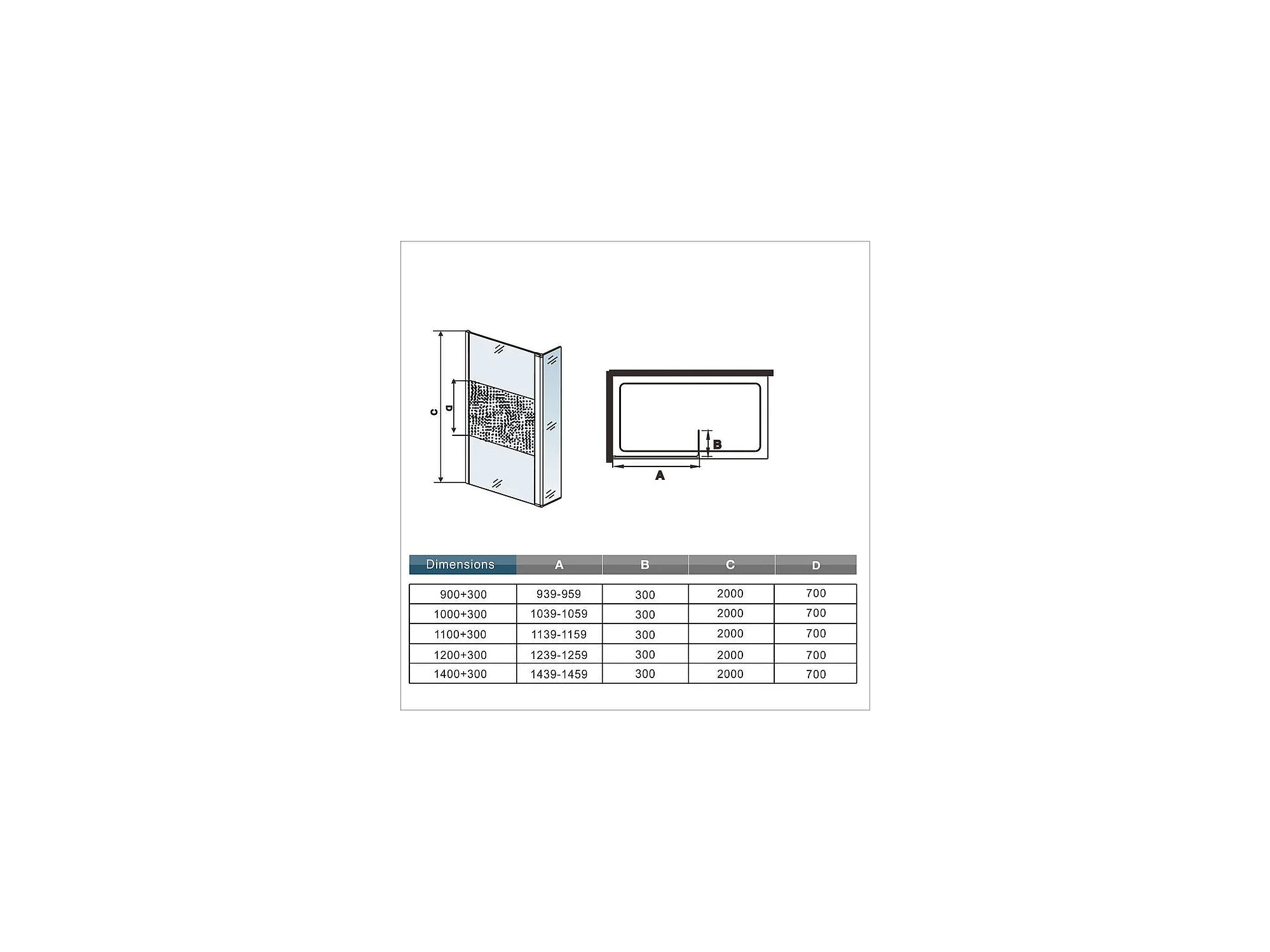 Paroi de douche fixe à l'italienne avec retour pivotant 100+40x200cm, charnières, avec barre de fixation 90cm Pince renforcée