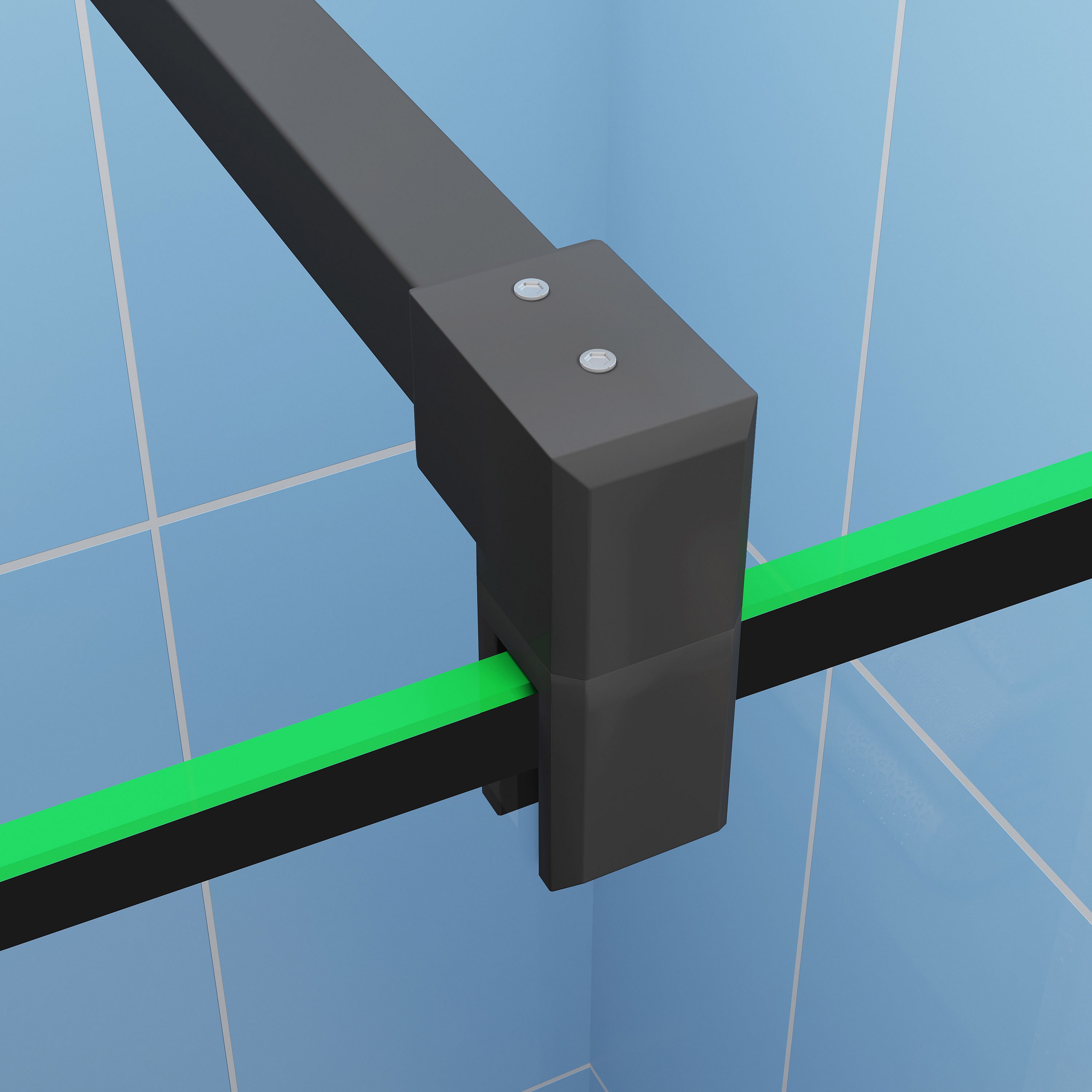 Paroi de douche fixe Noir 120 x 200cm - 8mm verre anticalcaire Style moderne + Étagère de Douche 120cm + barre de fixation 140cm