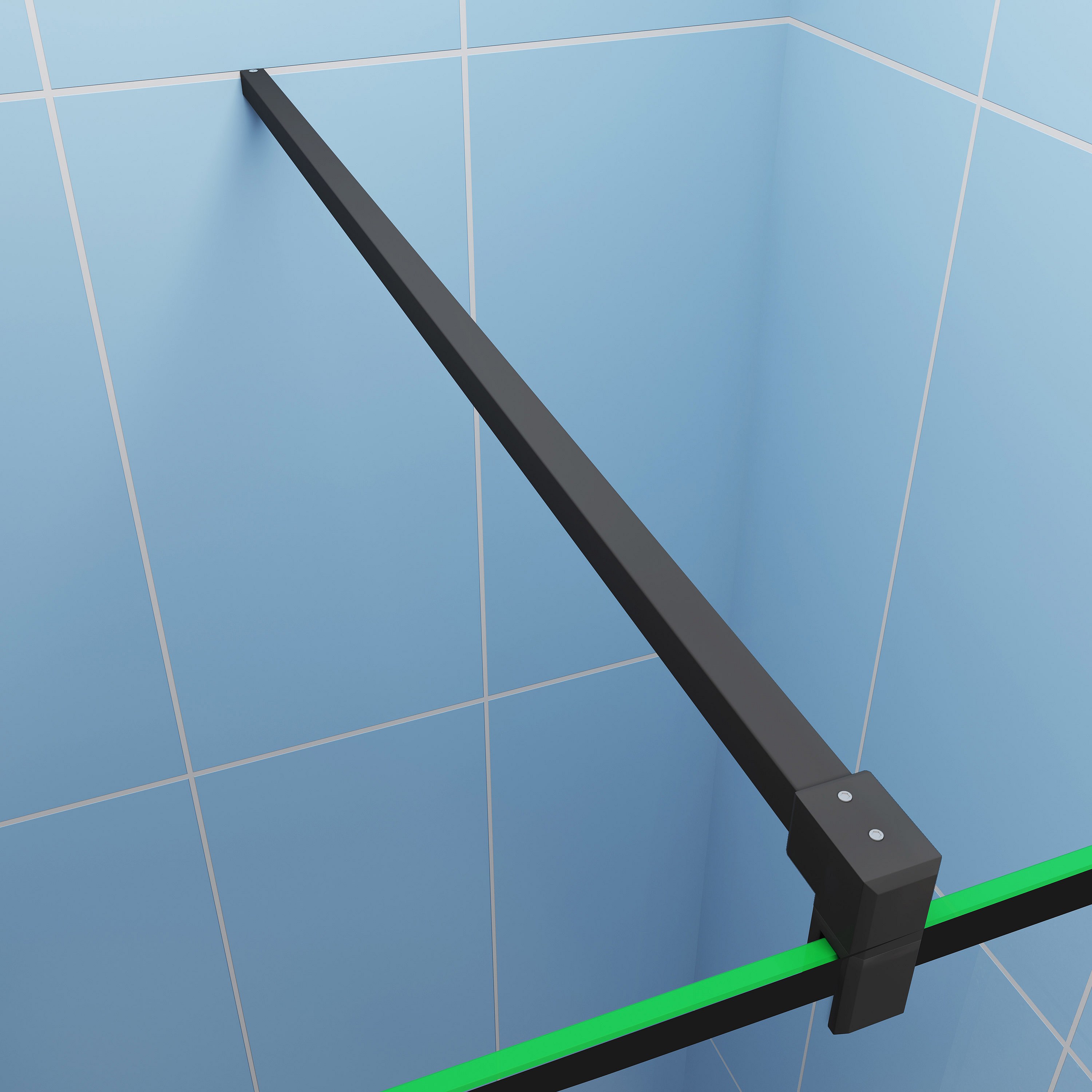 Paroi de douche fixe 140x200 cm + barre de fixation 140cm + Étagère de Douche 140cm en alu - verre 8 mm anticalcaire - Noir mat