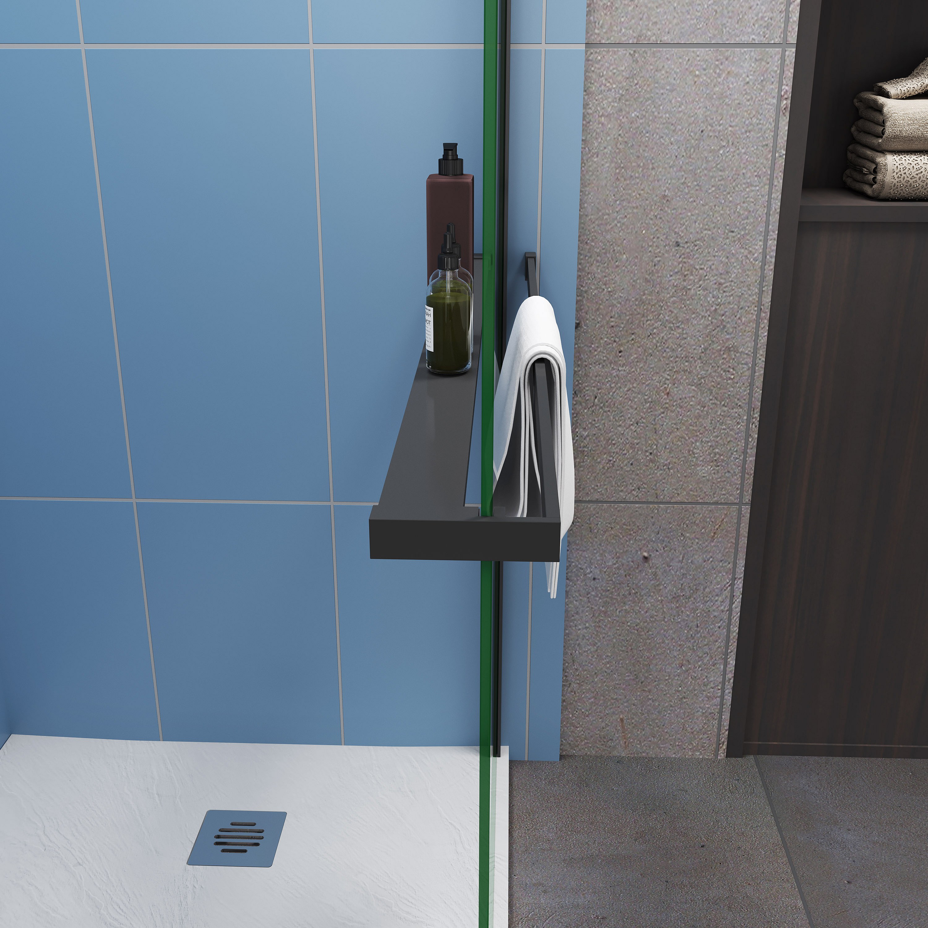 Paroi de douche à l'italienne noir 140x200cm + Étagère de Douche 140cm en alu - 8mm Verre coloré anticalcaire