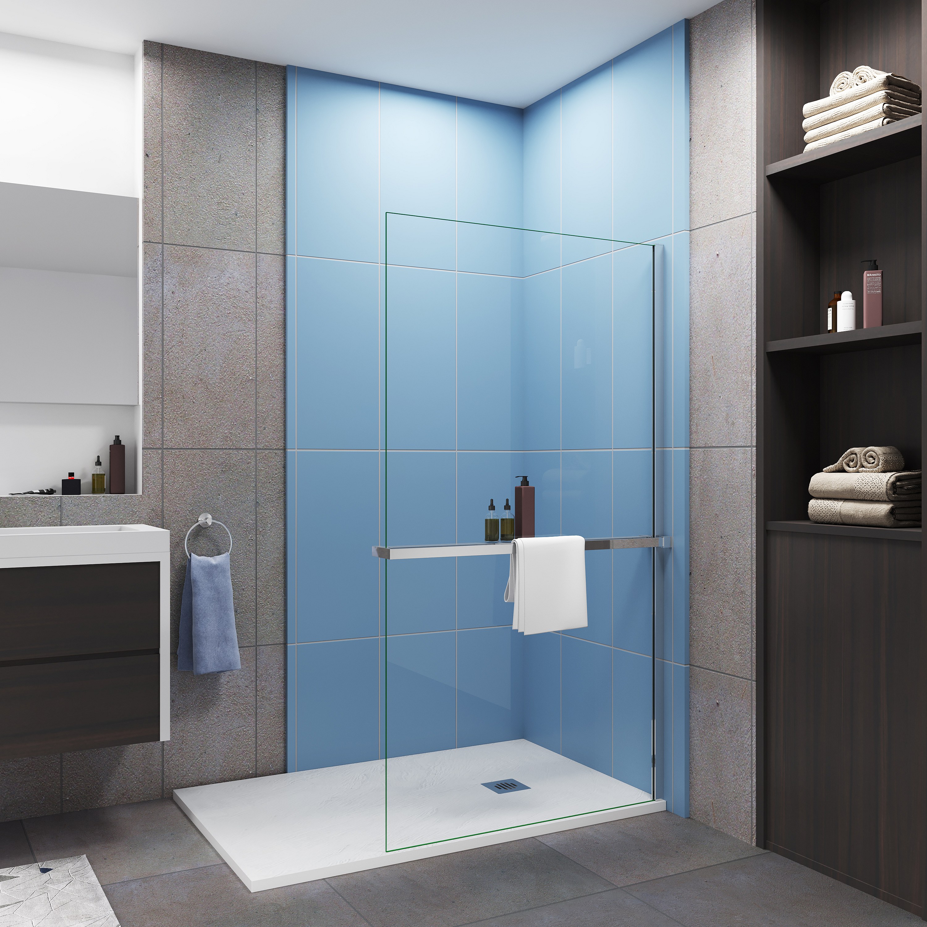 Paroi de douche à l'italienne 100x200cm - 8mm verre trempé sablé - Avec barre de fixation 140cm recoupable
