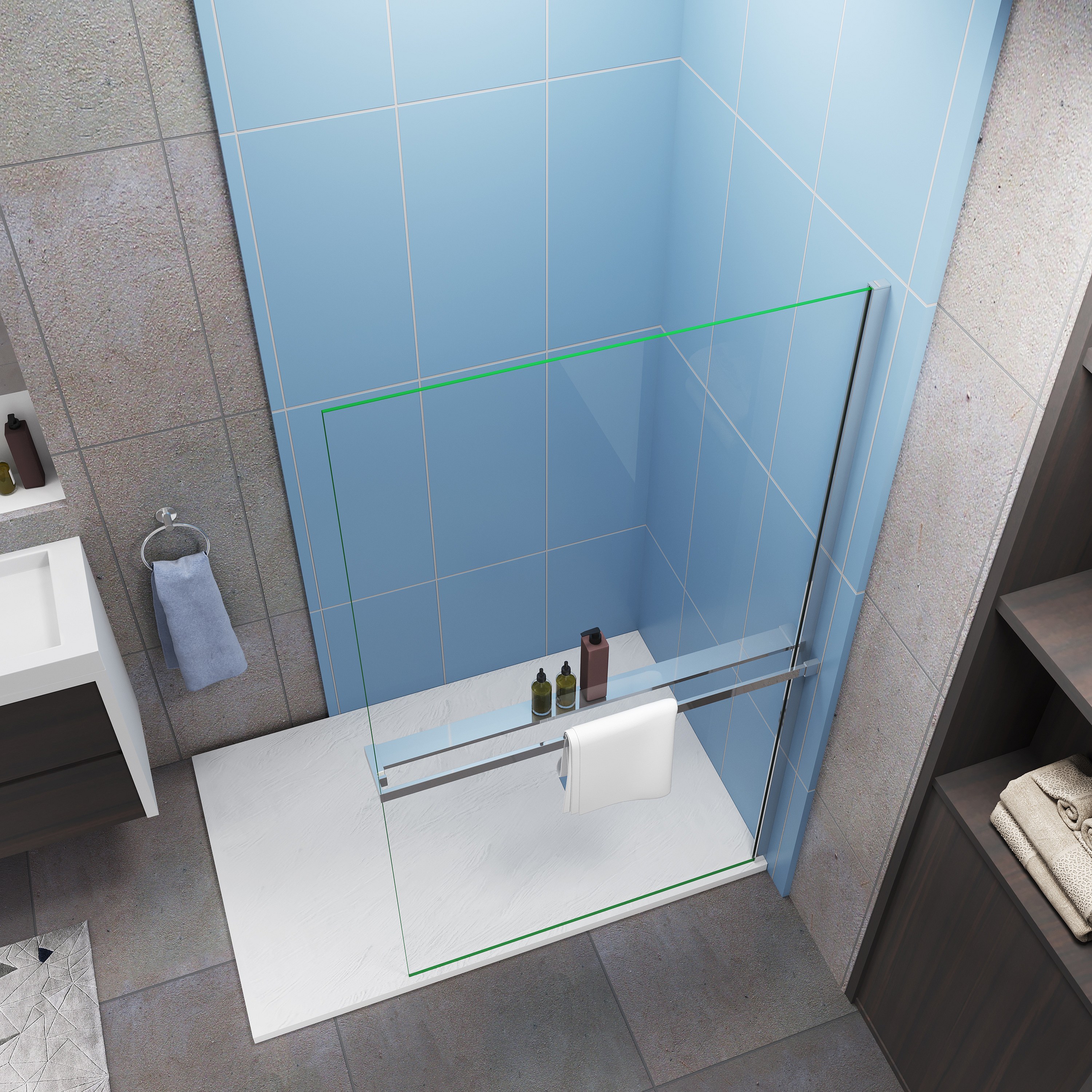 Paroi de douche à l'italienne Chrome 100x200cm - 8mm verre anticalcaire + Barre de fixation 140cm + Étagère de Douche 100cm