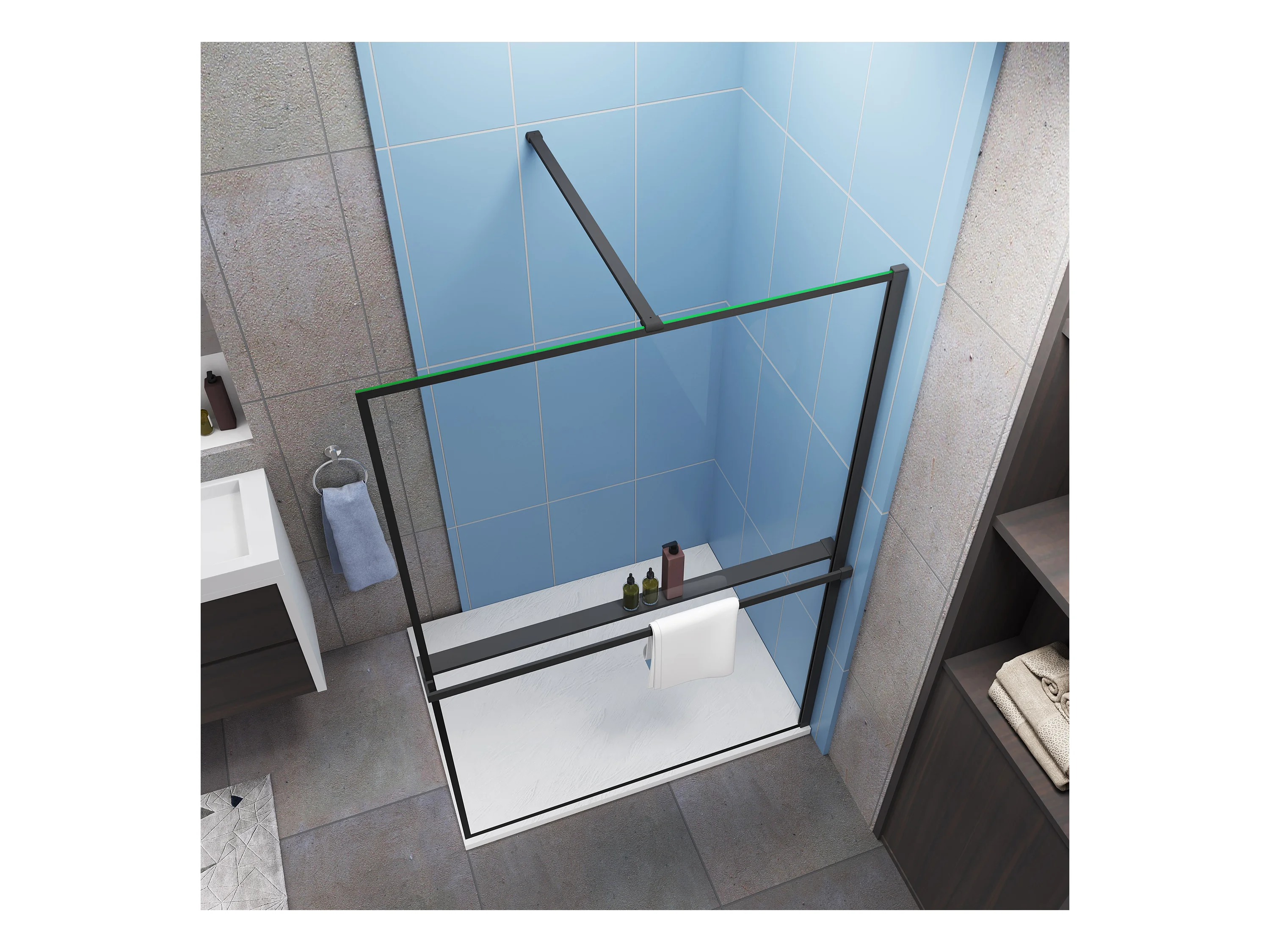 Paroi de douche à l'italienne noir 120x200cm - 8mm verre anticalcaire Avec Étagère de Douche 120cm en alu noir + barre de fixation noir 90cm