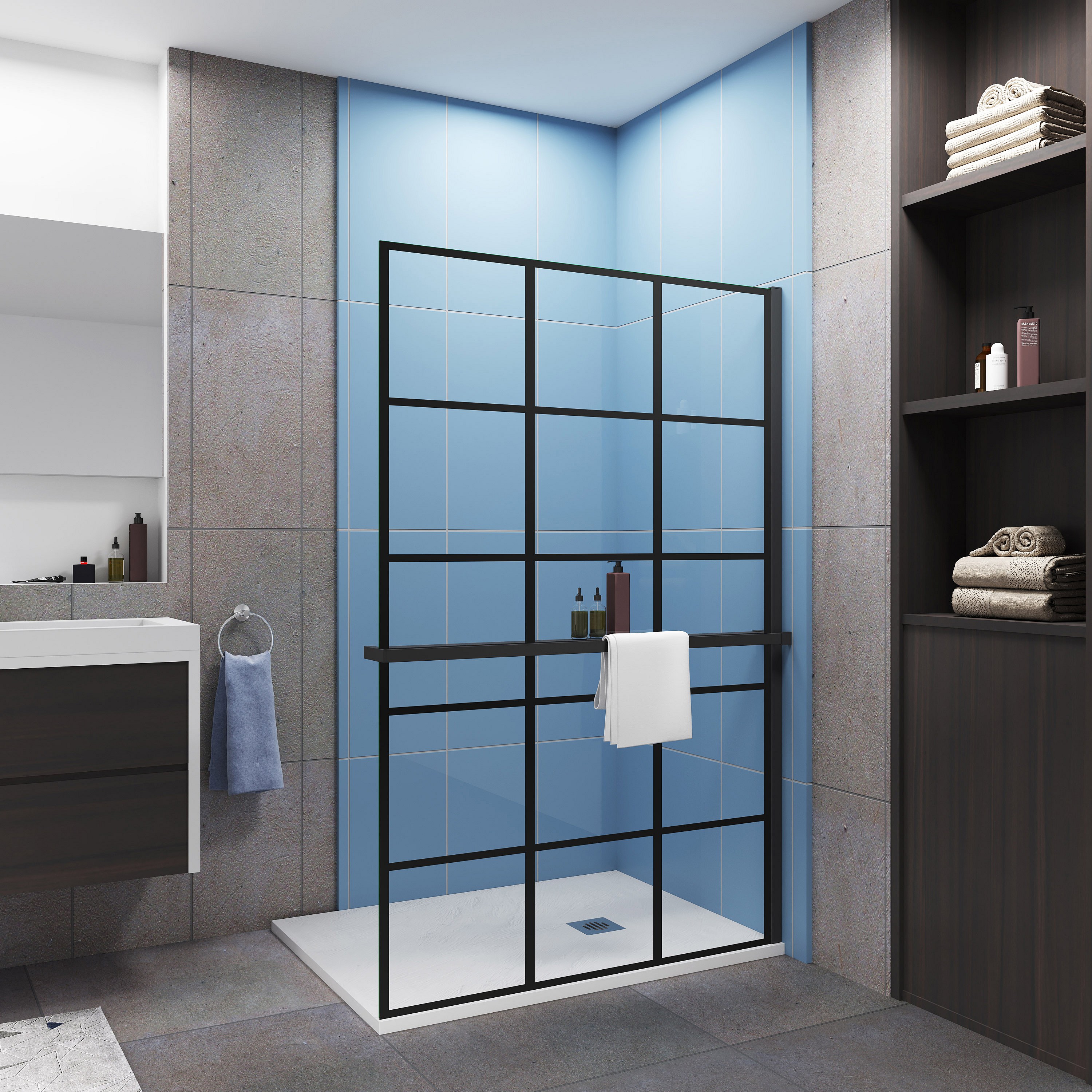 Paroi de douche 120x200cm style industriel + Étagère de Douche 120cm en alu noir + 8mm verre anticalcaire