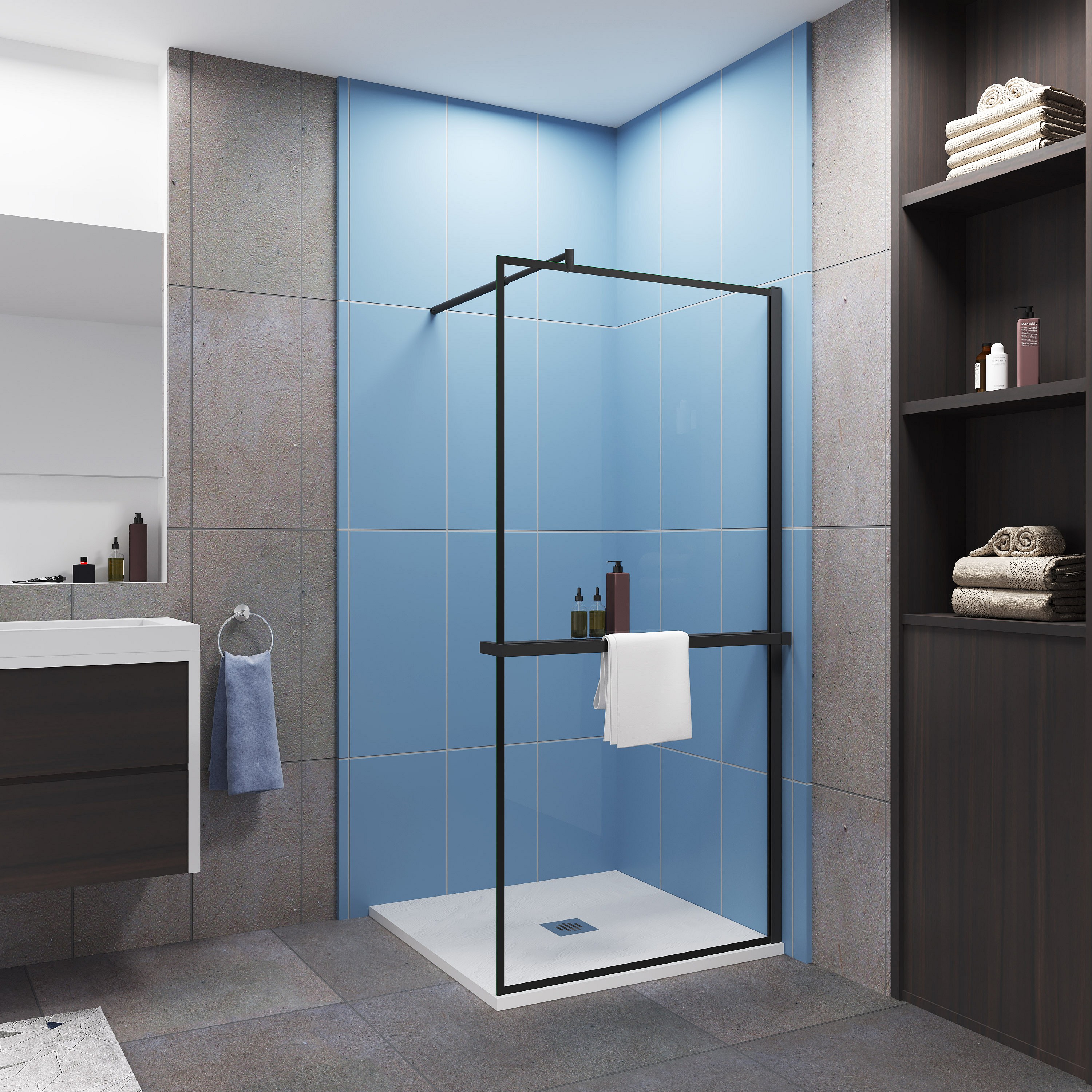 Paroi de douche fixe 80x200 cm - verre 8 mm anticalcaire - Noir mat + Étagère de Douche 80cm en alu