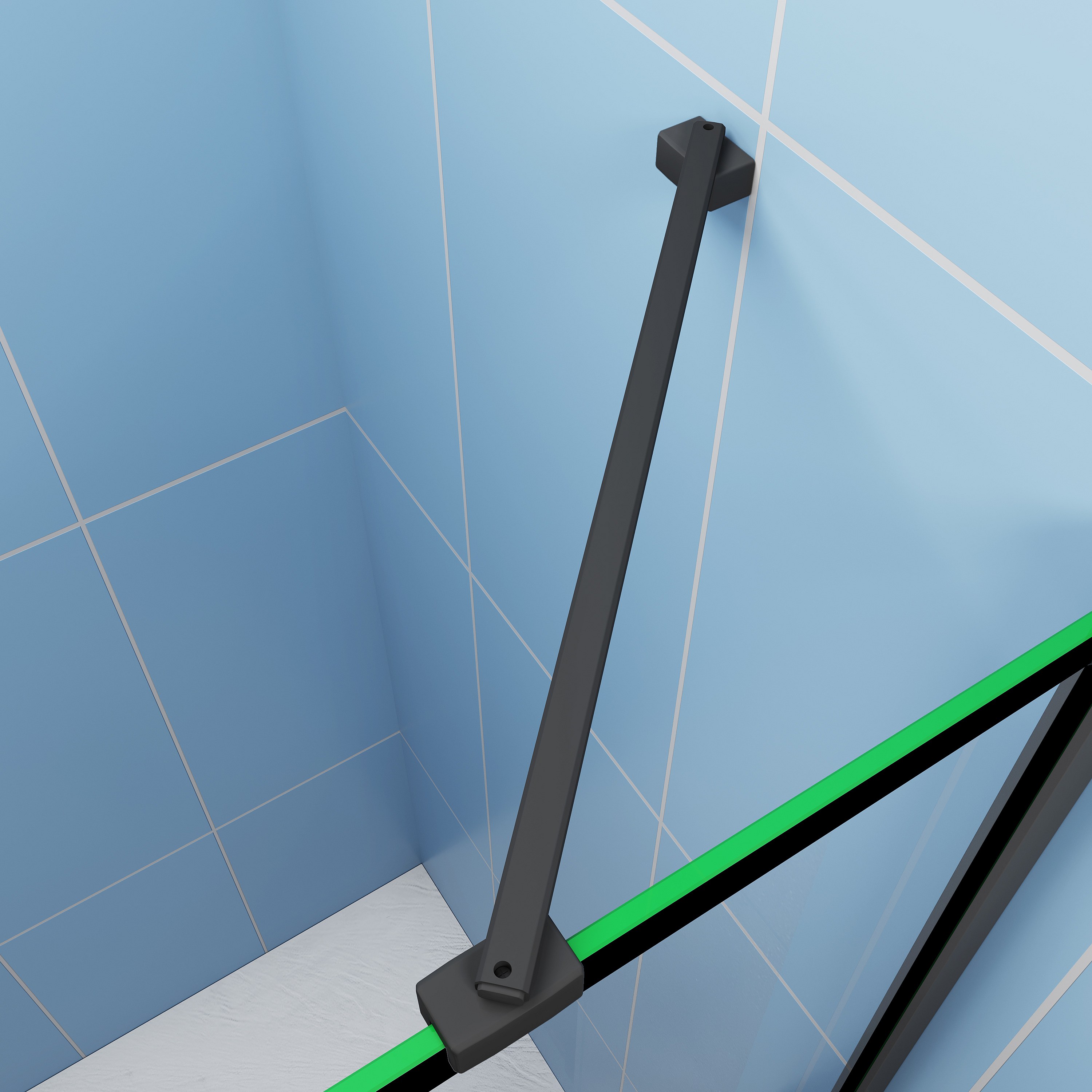Paroi de douche à l'italienne noir 90x200cm + Étagère de Douche 90cm alu - 8mm Verre sécurité + barre de fixation noir 45cm