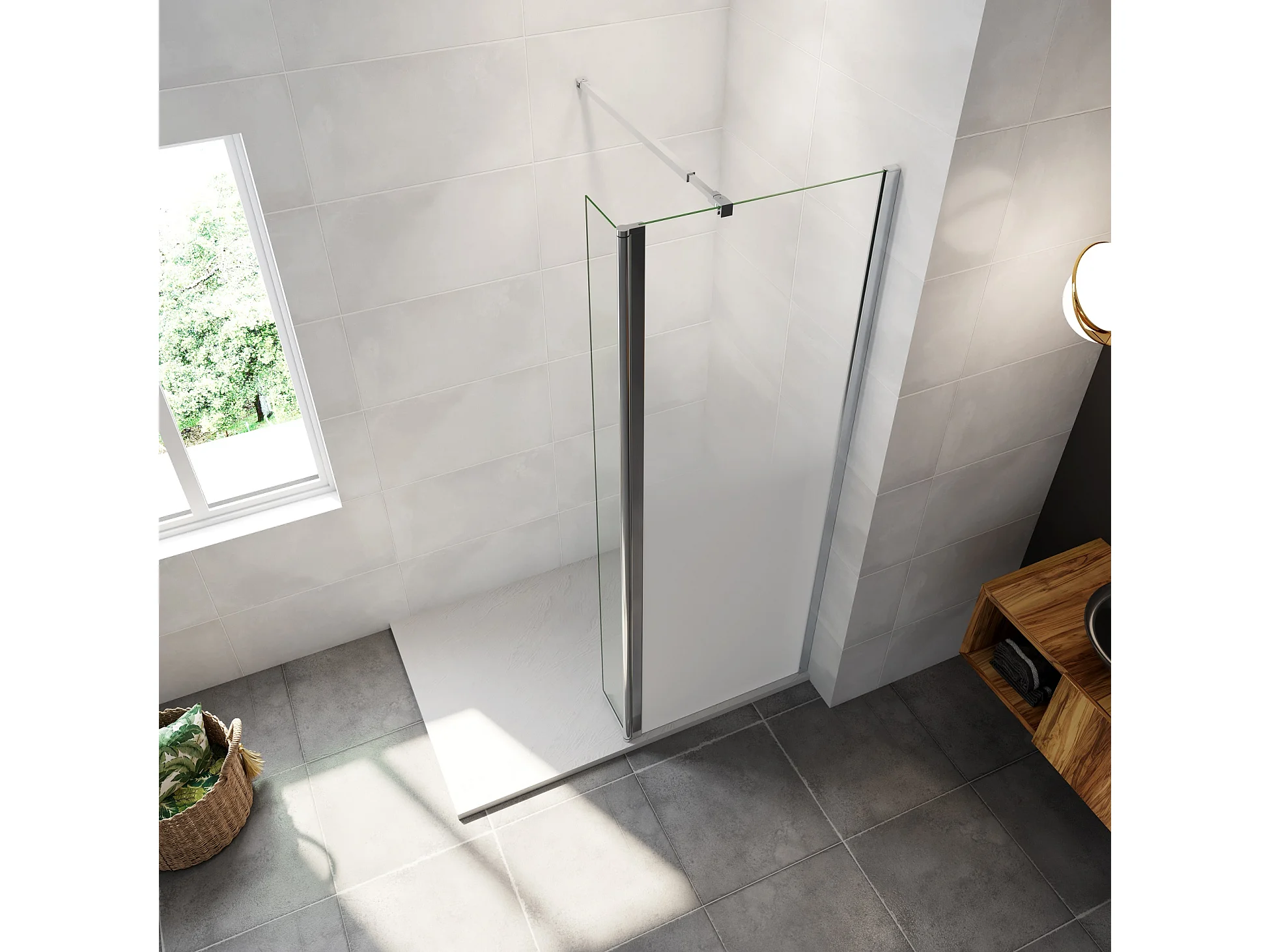 Paroi de douche verre trempé sérigraphié Brume - 80 x 200 cm - 8 mm Verre effet Brume, finition chrome avec barre de fixation 73-120cm