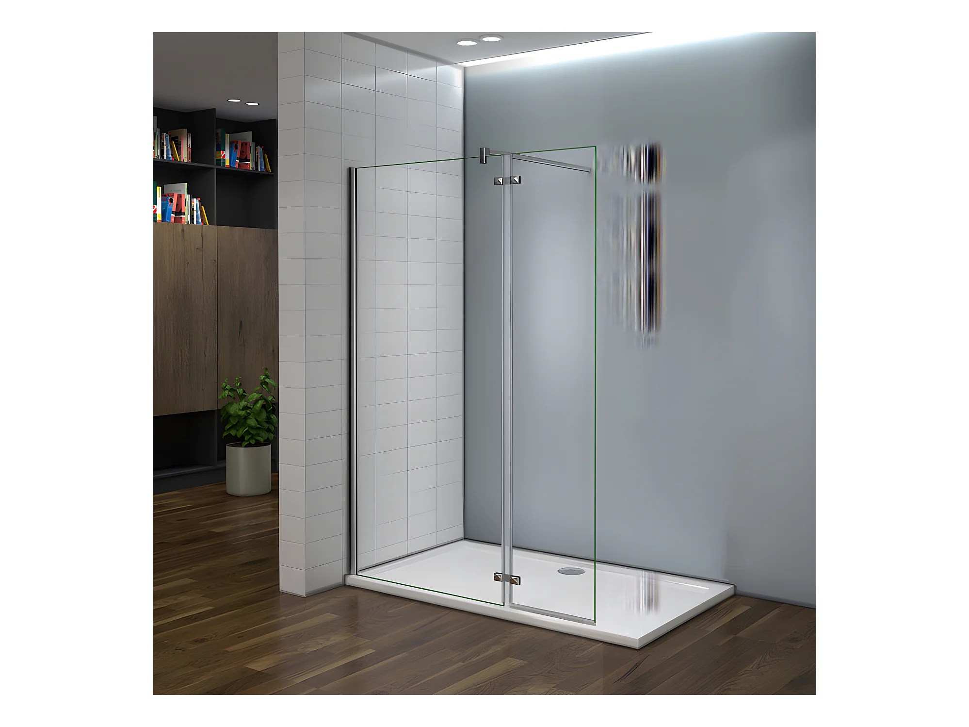 Paroi de douche à l'italienne 100+40x200cm avec retour pivotant - Verre 8mm trempé - Avec barre de fixation 90cm recoupable