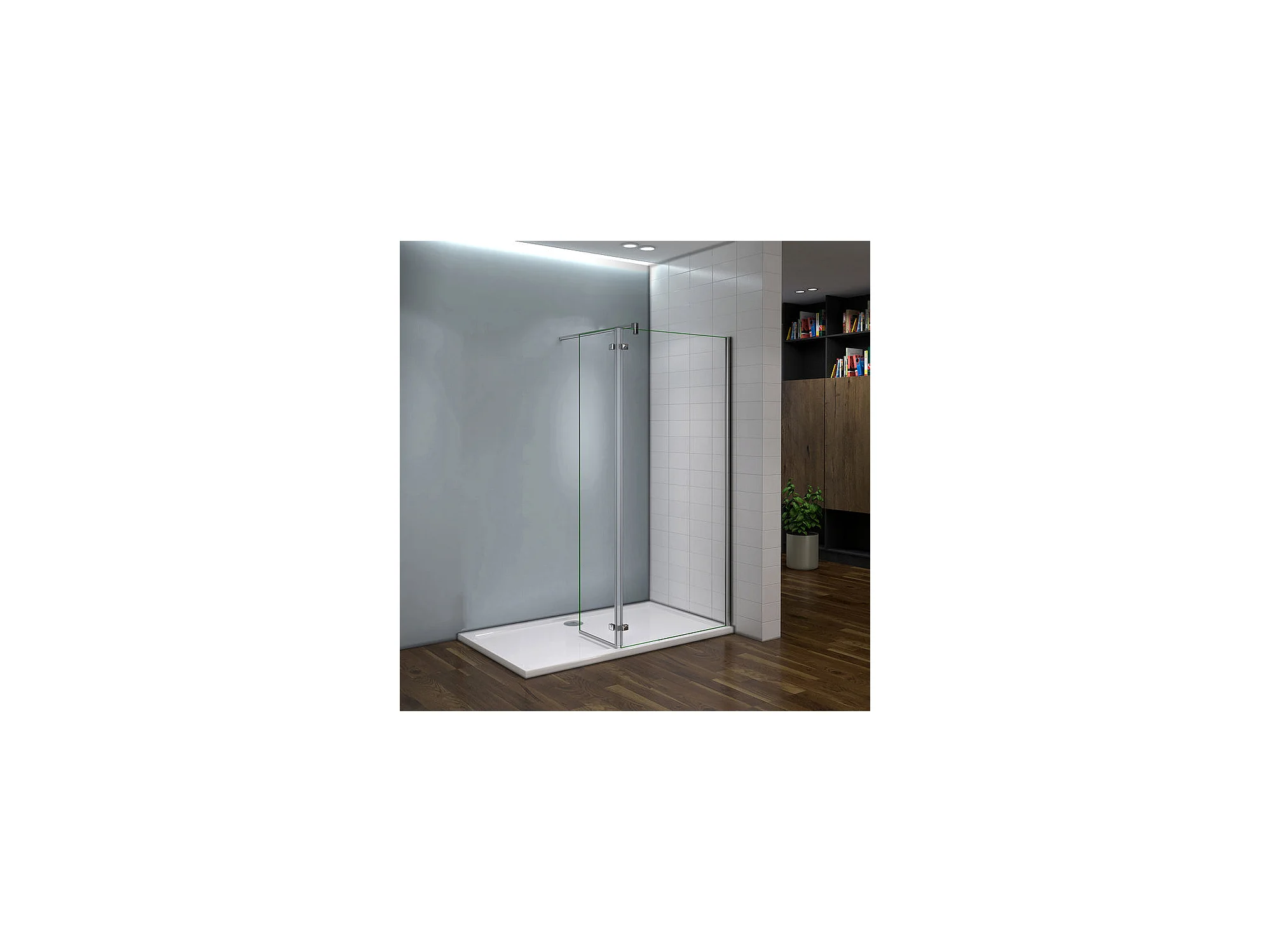 Paroi de douche à l'italienne 90+40x200cm avec retour pivotant - Verre 8mm trempé - Avec barre de fixation 140cm recoupable