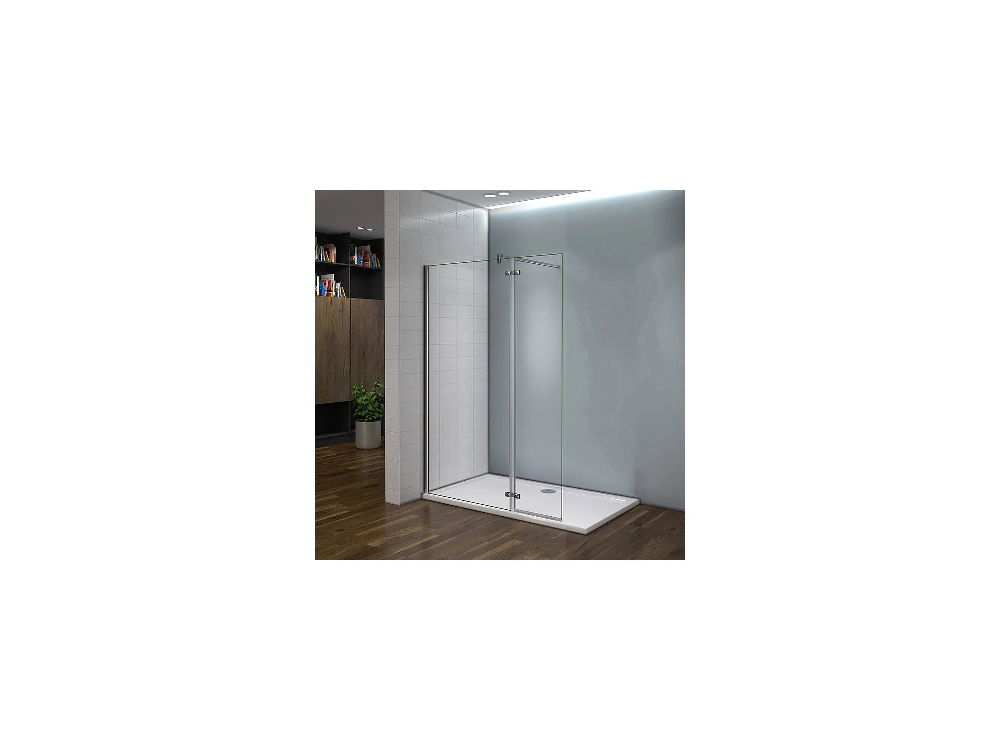 Paroi de douche fixe à l'italienne avec retour pivotant 90+40x200cm, charnières, avec barre de fixation 90cm Pince renforcée