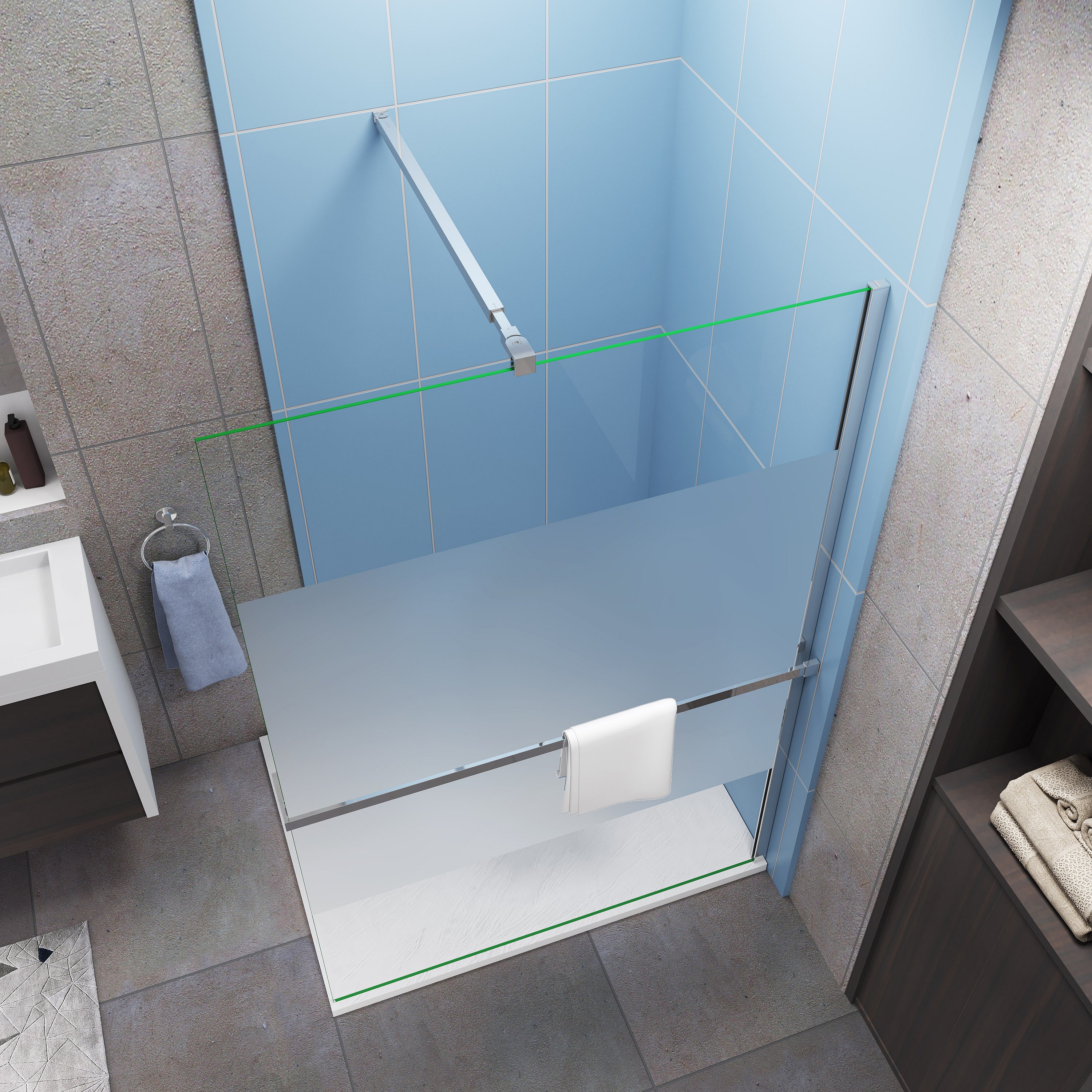 Paroi de douche à l'italienne 140x200cm avec barre de fixation 90cm en carré, en 8mm verre bande centrale dépolie