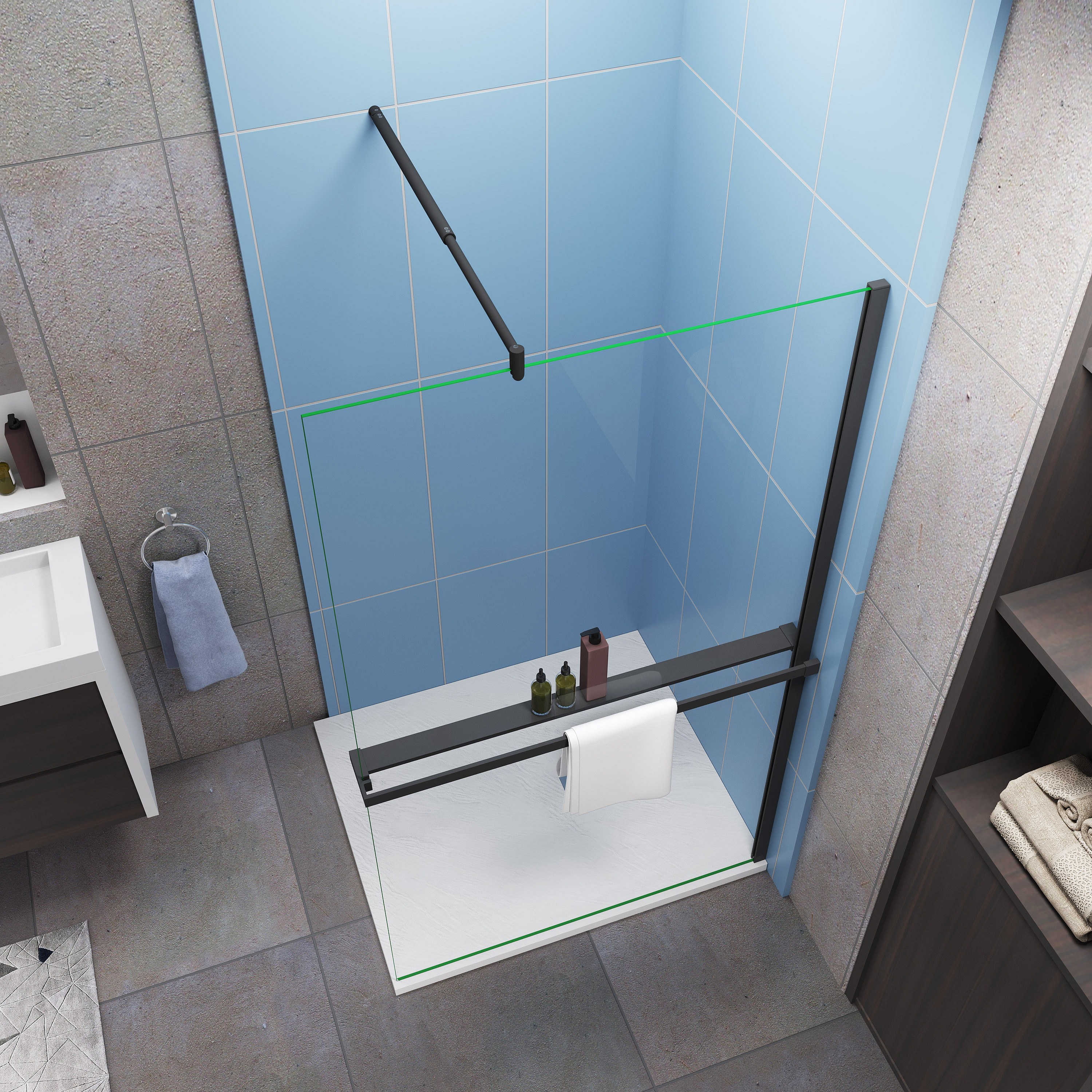 Paroi de douche fixe Noir 100 x 200cm - 8mm verre anticalcaire Style moderne + Étagère de Douche 100cm en alu + barre de fixation 70-120cm
