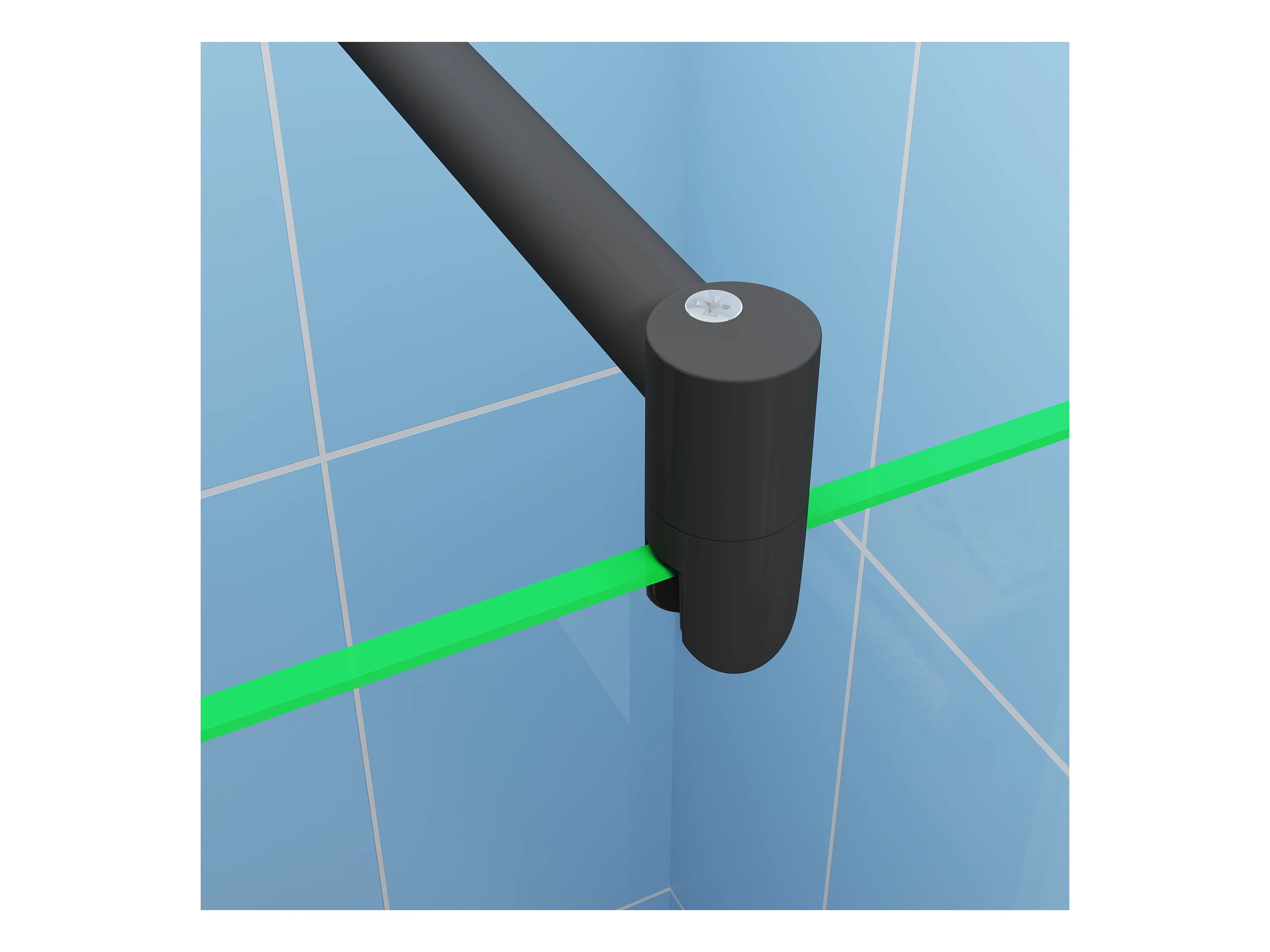 Paroi de douche fixe Noir 140 x 200cm - 8mm verre anticalcaire + Étagère de Douche 140cm + barre de fixation 90cm avec pince