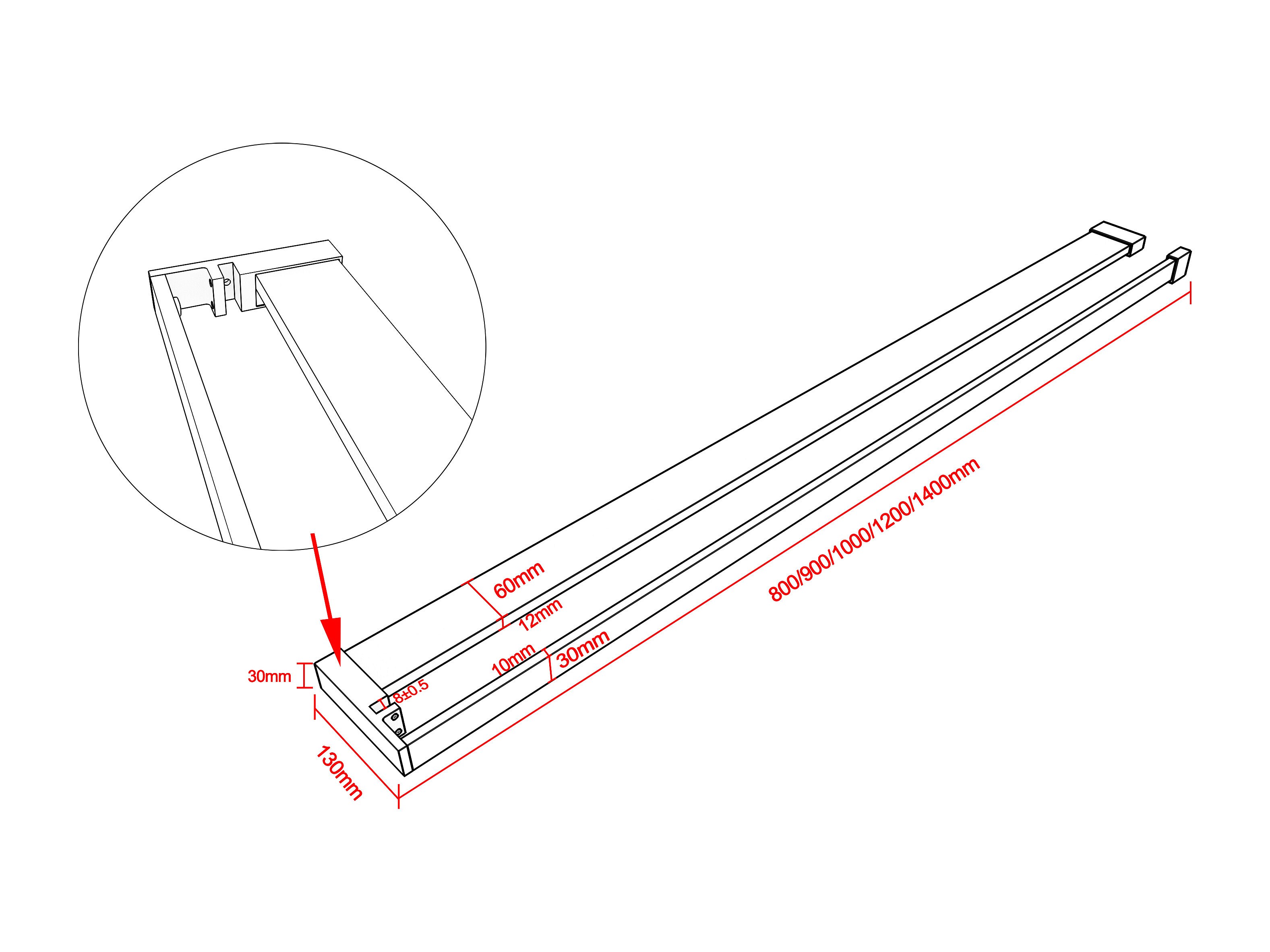 Paroi de douche fixe 120x200 cm + barre de fixation 70-120cm + Étagère de Douche 120cm alu - verre 8 mm anticalcaire - Noir mat