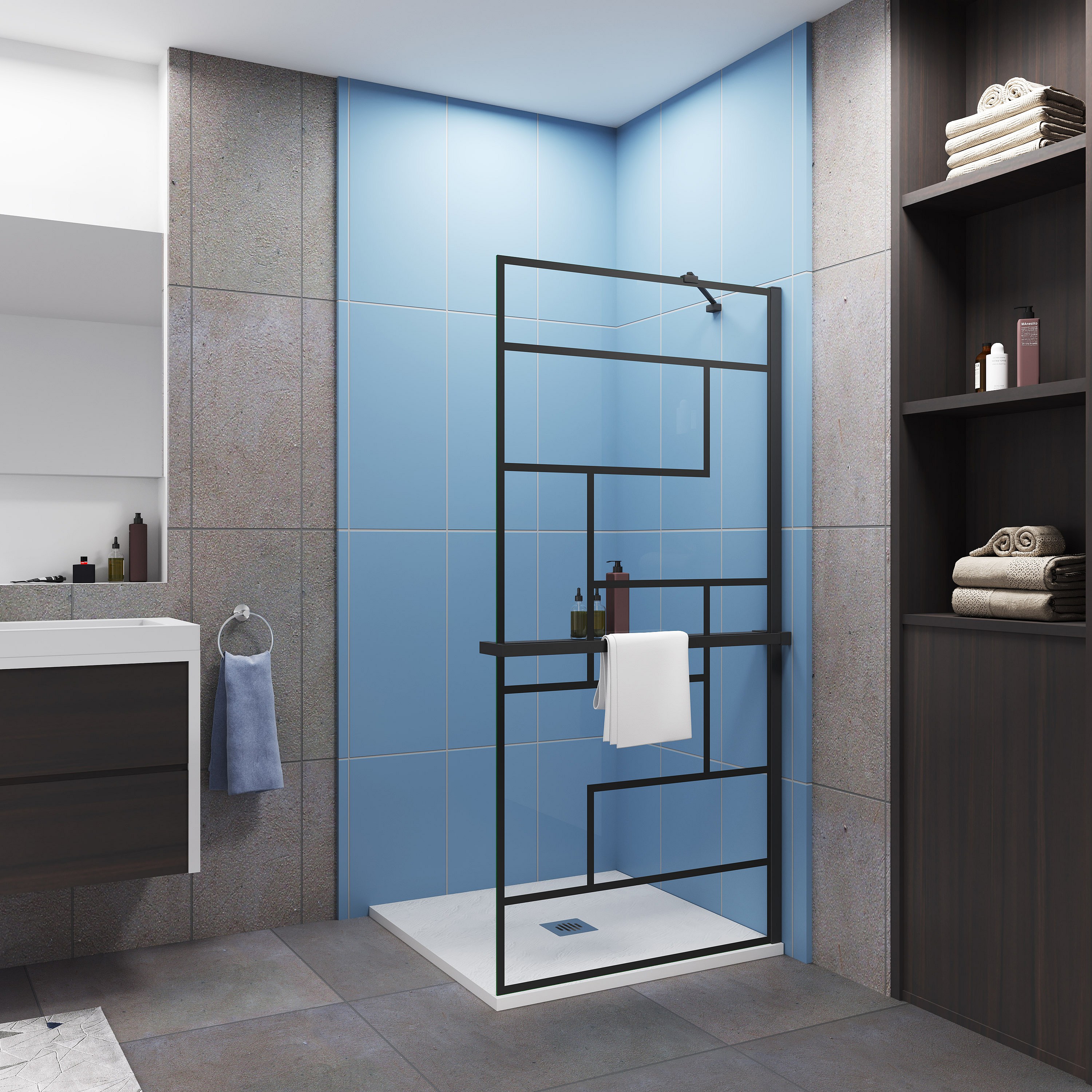 Paroi de douche fixe 80x200 cm - verre 8 mm anticalcaire - Noir mat + Étagère de Douche 80cm en alu
