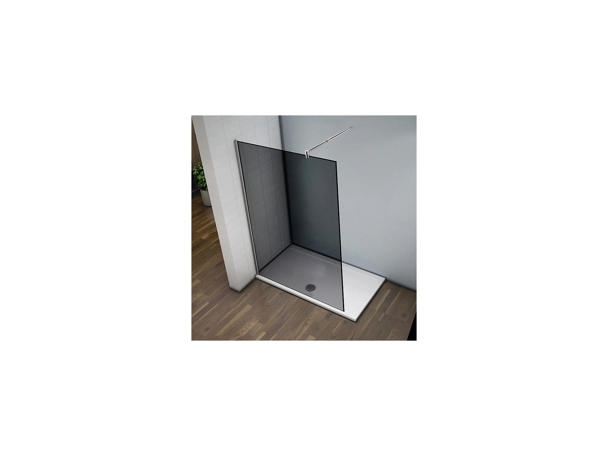 Paroi de douche grise 120x200cm à l'italienne avec barre de fixation 70-120cm en cylindrique, en 8mm verre trempé anticalcaire
