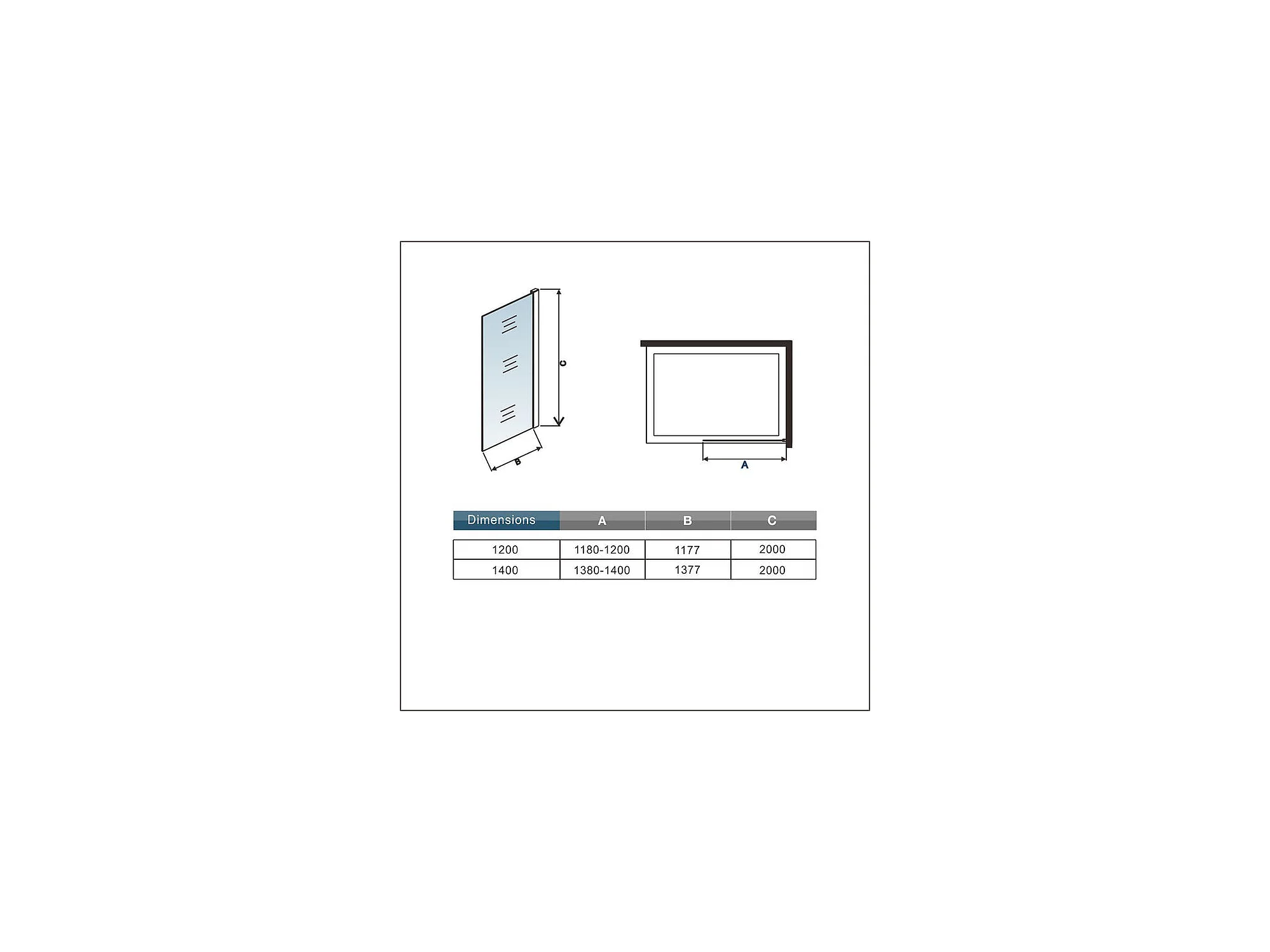 Paroi de douche grise 140x200cm à l'italienne avec barre de fixation 140cm recoupable, en 8mm verre trempé anticalcaire